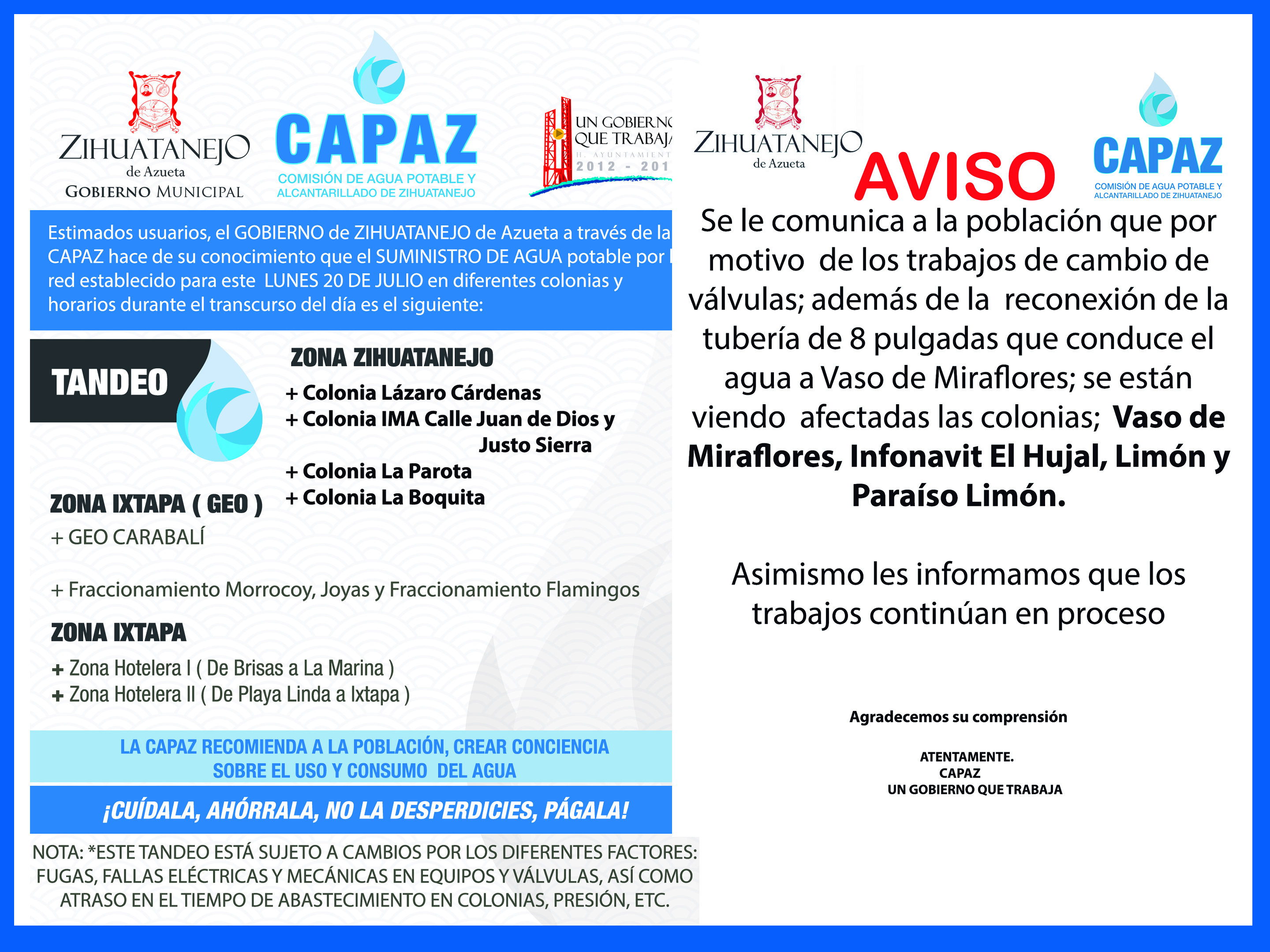 General Tandeo y aviso de agua potable en Ixtapa y Zihuatanejo para este Lunes 20 10 años hace adolfo Siguenos y dale Like: Siguenos y dale Like: Más historias General Trágico accidente en La Unión: mujer muere al ser arrollada por un automóvil 2 meses hace adolfo General Muelle de Zihuatanejo, la evolución con el tiempo 2 meses hace adolfo General Suman 37 fall3ci2s por lluvias en cuatro estados; Hidalgo, el más afectado 2 meses hace adolfo Deja una respuesta Cancelar la respuestaTu dirección de correo electrónico no será publicada. Los campos obligatorios están marcados con *Comentario * Nombre * Correo electrónico * Web Δ