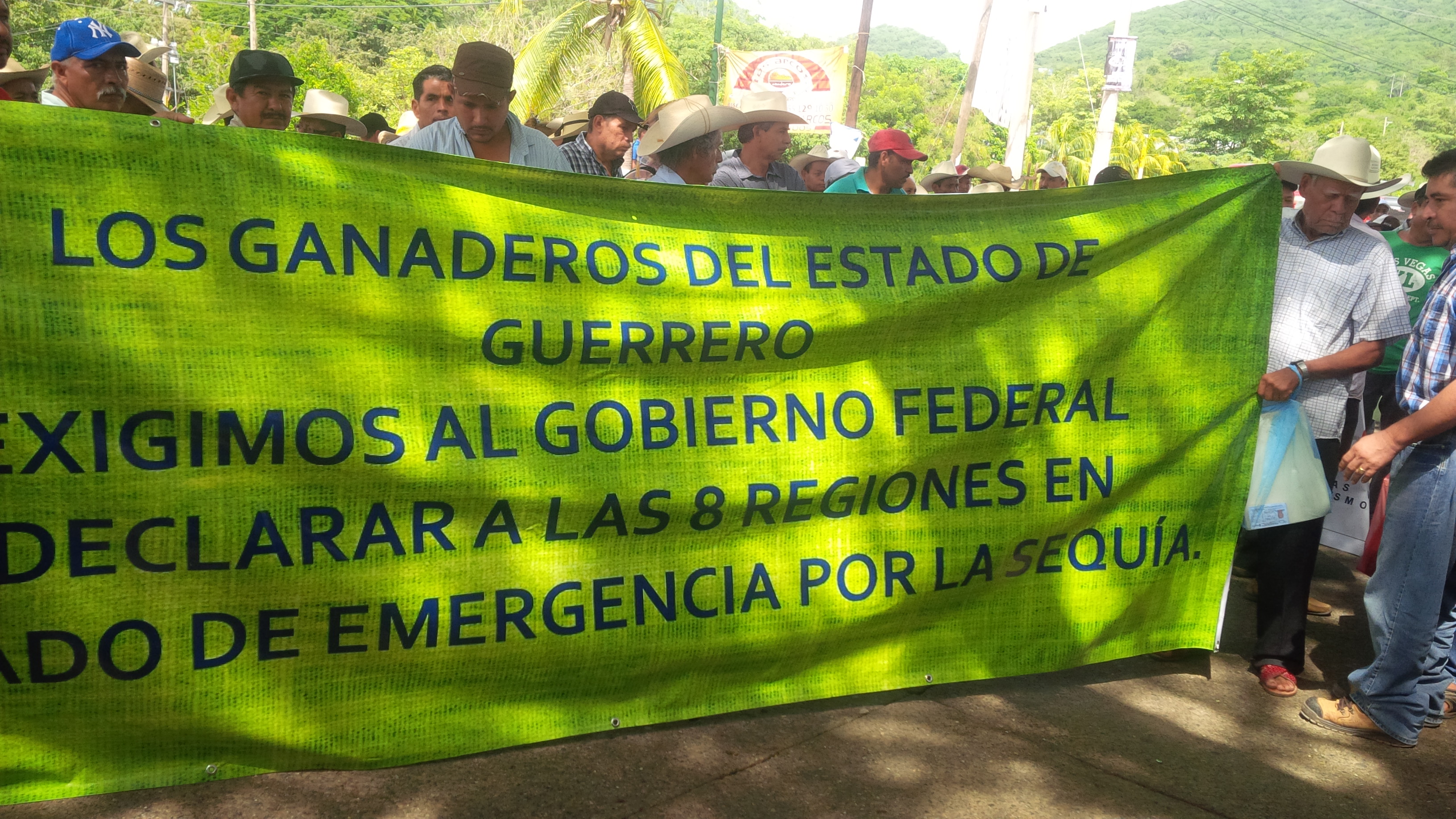 Más de dos mil cabezas de ganado se han muerto, la peor crisis de falta de lluvias que no se había dado desde hace 50 años, exigimos al gobierno federal declarar en estado de emergencia al agro y ganadería a las ocho regiones de Guerrero por la sequía. Informó lo anterior Atalo Niño Ramirez Presidente de la Unión Regional Ganadera del Estado de Guerrero entrevistado en la marcha hacia el ayuntamiento que realizaron el pasado viernes ganaderos y productores de maíz de la Costa Grande para exigir la entrega de fertilizante así como semilla de sorgo para pastura o forraje del ganado. Agregando que «lo que le pedimos a las autoridades federales es que nos apoyen para la siembra de sorgo un buen alimento para el ganado porque las siembras de maíz ya están fuera de tiempo». Añadió que las regiones más afectadas por la sequía son las dos Costas así como la de Tierra Caliente (la zona norte), la centro y la montaña del estado de Guerrero que esta falta de lluvias que han originado esta gran sequía que no se había dado desde hace más de 50 años. Aseguró que en la Costa Grande es donde se han dado más muertes de ganado por la sequía que ha hecho que haya escasez de alimento para el ganado teniendo el primer lugar Costa Grande en la muerte de más de dos mil cabezas de ganado vacuno. Indicó que para medio asegurar la alimentación del ganado en los próximos meses estamos solicitando al gobierno federal más de 400 mil bultos de sorgo para todo el Estado de Guerrero además de 160 mil toneladas de fertilizante. Destaco que la sequía por la falta de lluvias es preocupante para los ganaderos debido a que hay escasez de pastura para el ganado que aunque ya le llovió al pasto, esta sobre pastoreado el campo.
