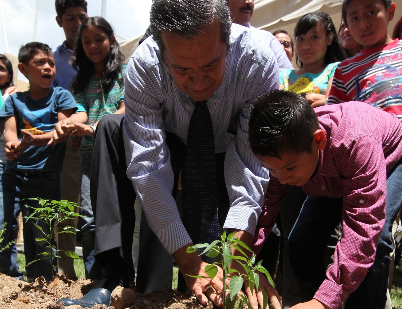 Chilpancingo, Guerrero, 12 de septiembre.- Al firmar el convenio entre la Sedesol y el DIF Guerrero para la instalación de huertos de hortalizas en la Casa Hogar Modelo, el gobernador Rogelio Ortega Martínez refrendó el apoyo del gobierno del estado a los menores que habitan en este espacio. “Jamás se sientan en desamparo o en situación de discriminación. Su paso por aquí asúmanlo como una experiencia donde ustedes se preparan para ser mujeres y hombres útiles para Guerrero”, enfatizó el gobernador. Durante su visita a la Casa Hogar, donde fue recibido y abrazado por los niños, niñas y jóvenes que están bajo custodia del DIF Guerrero, Rogelio Ortega los motivó a crecer fuertes y volar hacia un mejor futuro. “Yo quiero que sean grandes, como los albatros que cruzan los océanos y ya cuando nosotros ya no estemos gobernando Guerrero, ahí esteremos apoyándolos para fortalecer sus alas”, recalcó. Acompañado por su esposa Rosa Icela Ojeda Rivera y por la presidenta del DIF Guerrero, Marxitania Ortega, el gobernador puso en marcha el primer huerto en una Casa Hogar, para que los menores aprendan esta actividad productiva y conozcan las técnicas para cosechar las hortalizas de primera necesidad y en el futuro les sirva para su economía familiar. Por su parte el secretario de Desarrollo Social, Jesús Acroy Mendoza de la Lama explicó que el programa de huertos inició en el 2013 y actualmente se trabaja en las siete ciudades más importantes del estado. Ahora en coordinación con el DIF Guerrero se promoverán estas actividades en los infantes y jóvenes para desarrollar sus capacidades. Agregó que a través del Programa Urbano contra la Pobreza Alimentaría (PUPA) se instalará una huerta que tendrá una extensión de 10 por ocho metros donde sembrarán chile, jitomate, cilantro, cebolla y calabacita italiana para su consumo. En este espacio se usará un sistema de riego a través de goteo con una mezcla de sustrato, para que los habitantes de la Casa Hogar aprendan a dosificar el agua para las plantas, además que asistirán a cursos y talleres para conocer los procesos de germinación, compostas y pesticidas orgánicos. Al evento asistieron también la directora del DIF Guerrero, Karina Estefanía Hernández y la responsable del PUPA, Jimena Ortega. Enseguida el gobernador Rogelio Ortega Martínez invitó a comer a los habitantes y al personal de la Casa Hogar Modelo del DIF Guerrero.