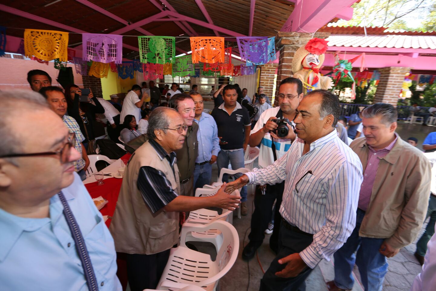 Chilpancingo, Gro., 2 de enero de 2016.- En Guerrero se mandó un mensaje al país que se puede viajar en paz, no ha habido bloqueos carreteros, lo que permitió una excelente temporada vacacional, informó el gobernador Héctor Astudillo Flores, durante el tradicional festejo que organiza el municipio de Chilpancingo por el Día del Periodista y que en esta ocasión se adelantó y contó con la presencia de un mandatario estatal. El mandatario estatal señaló que el reto de Guerrero en este año es encontrar mayor paz, “estoy convencido de que no podemos darnos tregua, ni a los funcionarios ni a los que piensan que el gobierno no va a actuar, son tiempos complejos difíciles que exigen una mayor entrega y así lo estamos haciendo”. El gobernador Héctor Astudillo recordó que los últimos días del 2015, se desactivó el último plantón que había, al acordar con los jóvenes rechazados de la UAGro quienes permanecían instalados en la glorieta de La Diana de Acapulco, lo que significaba una pésima imagen para este destino turístico y los visitantes que arribarían a este destino de playa; además se cumplió en tiempo y forma todos los compromisos financieros con los trabajadores del gobierno, a quienes se les pagaron sus dos quincenas, aguinaldo y bono sexenal, a través de un esfuerzo presupuestal. Ante decenas de periodistas y acompañado por el presidente municipal, Marco Antonio Leyva Mena y el presidente del patronato de la Feria, Daniel Morales Pastor, el gobernador Astudillo Flores se congratuló de que al momento se tiene saldo blanco en la feria más antigua del país y que al mismo tiempo, la temporada vacacional “ha sido extraordinaria” aunque aún falta que concluya el miércoles y anunció que el final hará un recuento; refirió que hasta este día, la ocupación hotelera alcanzó el 97 por ciento, “tenemos playas saturadas y un gran movimiento económico en el puerto, al igual que en los demás puntos turísticos”. Dijo que todos los conflictos se han atendido y que las escasas manifestaciones han sido pacíficas, “incluso cuando se realizó una conmemoración por la muerte de los dos normalistas el pasado 12 de diciembre, el acto duró una hora y media aproximadamente, pero posteriormente y a la fecha, el tránsito en la Autopista del Sol ha sido normal y constante. Astudillo Flores concluyó su mensaje, deseando parabienes a los comunicadores y entregando presentes que se rifaron entre los asistentes al convivio por el Día del Periodista a festejarse el próximo cuatro de enero.