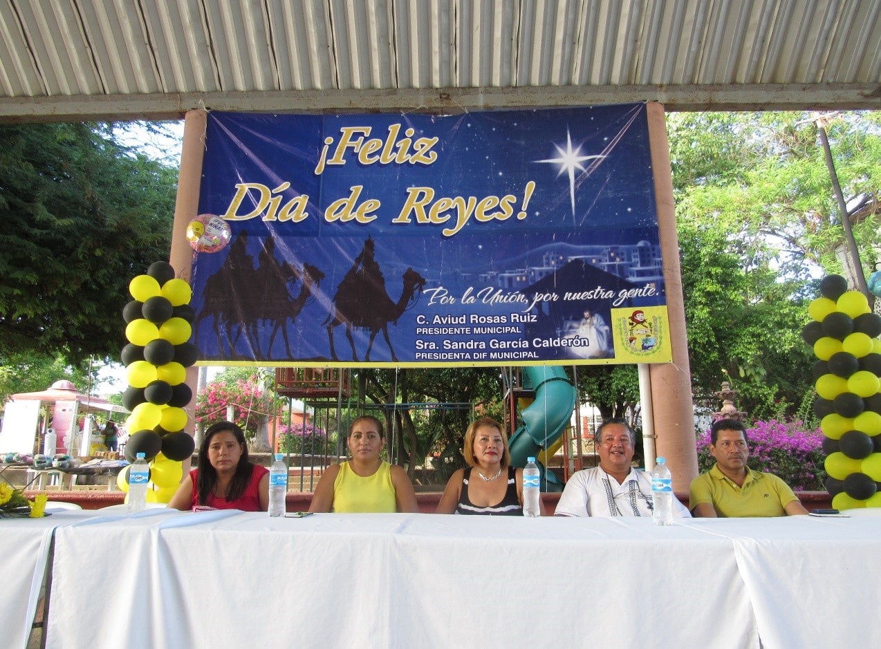 El pasado sábado 9 y domingo 10 del 2016.- la Sra. Sandra García Calderón presidenta del DIF municipal de la unión, gro. Con el apoyo de su esposo Aviud Rosas Ruiz – presidente municipal constitucional de la unión de Isidoro montes de oca, gro. Primero en la unión el día 9 de enero del presente año. Acompañada de wulfrano Orozco Moreno –regidor de desarrollo rural, Fabiola Barrera Hernández-regidora de educación y juventud, Javier Moreno López secretario general del h. ayuntamiento municipal, Micaela galeana lozano- directora del DIF municipal. El día 10 en peta calco acompañada del profe. Bertín Casimiro reyes-comisario municipal de peta calco, Roberto Sánchez Sotelo- comisario suplente, Micaela galeana lozano –directora del DIF municipal, Carlos Izazaga Espinosa -director de servicios públicos y Mirna Pérez Rosas- coordinadora de eventos especiales. Por motivo del día de reyes la señora SANDRA GARCIA DE ROSAS , y la colaboración del departamento de gestión social de la central termo eléctrica Plutarco Elías calles de petacalco, con la donación de algunos juguetes; ofreció refrigerios , partida de roscas y refrescos ., mientras se presentaba un show de payasos para darles un rato de alegría a los niños unionenses que asistieron a estos eventos y por último se llevó acabo la entrega de juguetes.