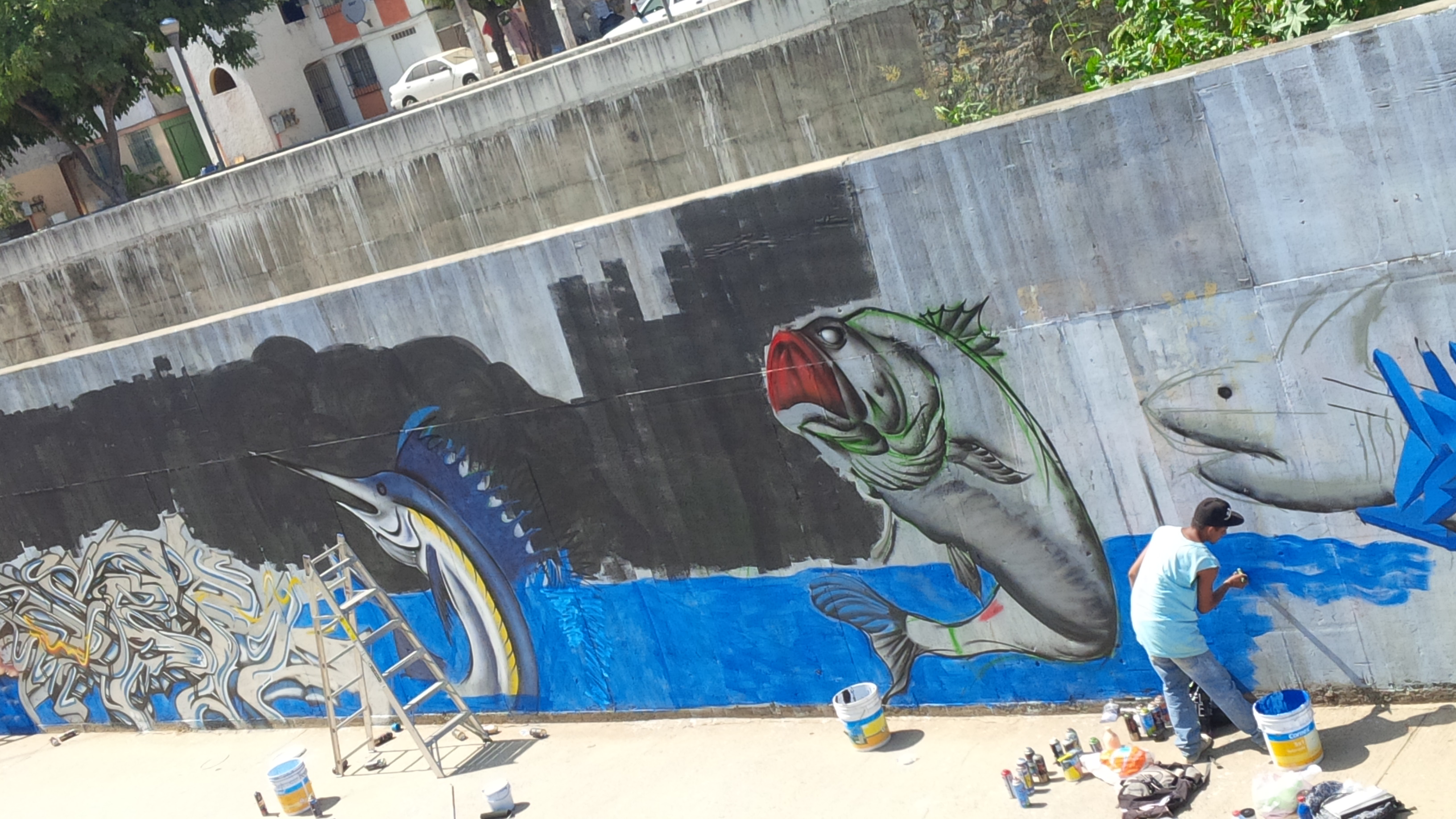 Con el aerosol los llamados grafiteros podemos hacer cosas positivas plasmar mensajes que nos hagan hacer conciencia ciudadana de algunos problemas sociales. Expresó lo anterior José Maria Muñoz Hernandez joven talentoso que esta a punto de terminar su carrera universitaria como es la arquitectura aficionado al grafiti actividad que se le atribuye a los chicos banda y por tal motivo hay cierto rechazo al ser catalogados como jóvenes que al pasar por paredes o muros particulares públicos los bandalizan pintarrajenado figuras de muy mal gusto. Agregó que le ha costado trabajo convencer a las autoridades pero que en el Instituto municipal de la juventud Injuve le consiguieron el permiso de realizar una obra colectiva en una barda del canal de Agua de Correa a la altura del fraccionamiento las Huertas. En la realización de un grafiti mural en dicha obra participaron jóvenes de Tecpan de Galeana Lázaro Cárdenas y Zihuatanejo que inclusive al estar realizando el mural otros llegaron con un aparato de sonido donde pusieron música joven y de rap, para amenizar el ambiente juvenil. Agregó Chema como cariñosamente lo llaman sus amigos que los materiales que utilizaron para el mural lo compraron con sus propios recursos debido a que ninguna casa comercial los ha querido auspiciar. Aseguró que la obra colectiva la denominaron «el océano perdido», es un mensaje a la ciudadanía para que no arrojemos basura a los canales ríos ni arroyos ni a las barrancas, esto es debido a que se da cuenta que por ese canal bajan aguas contaminadas que van a dar al océano pacífico propiciando con esto la grave contaminación de los oceanos. Asimismo hizo un llamado a las autoridades para que eviten arrojar al mar a través de estos canales pluviales, aguas contaminadas y basura de todo tipo que va a dar al mar. Dijo que en una barda particular en la que consiguió el permiso para realizar una obra pictórica y fue un homenaje al conocido deportista y domador de cocodrilos y cuando estaba realizando su trabajo llego la policía y le llamo la atención pero para esto ya contaba con el permiso de la propietaria y las cosas no llegaron a mas. Indicó que con estas pinturas o murales urbanos quiere mandar un mensaje a las autoridades para demostrales que con los areosoles la actual juventud también puede plasmar buena pintura artística en murales urbanos.