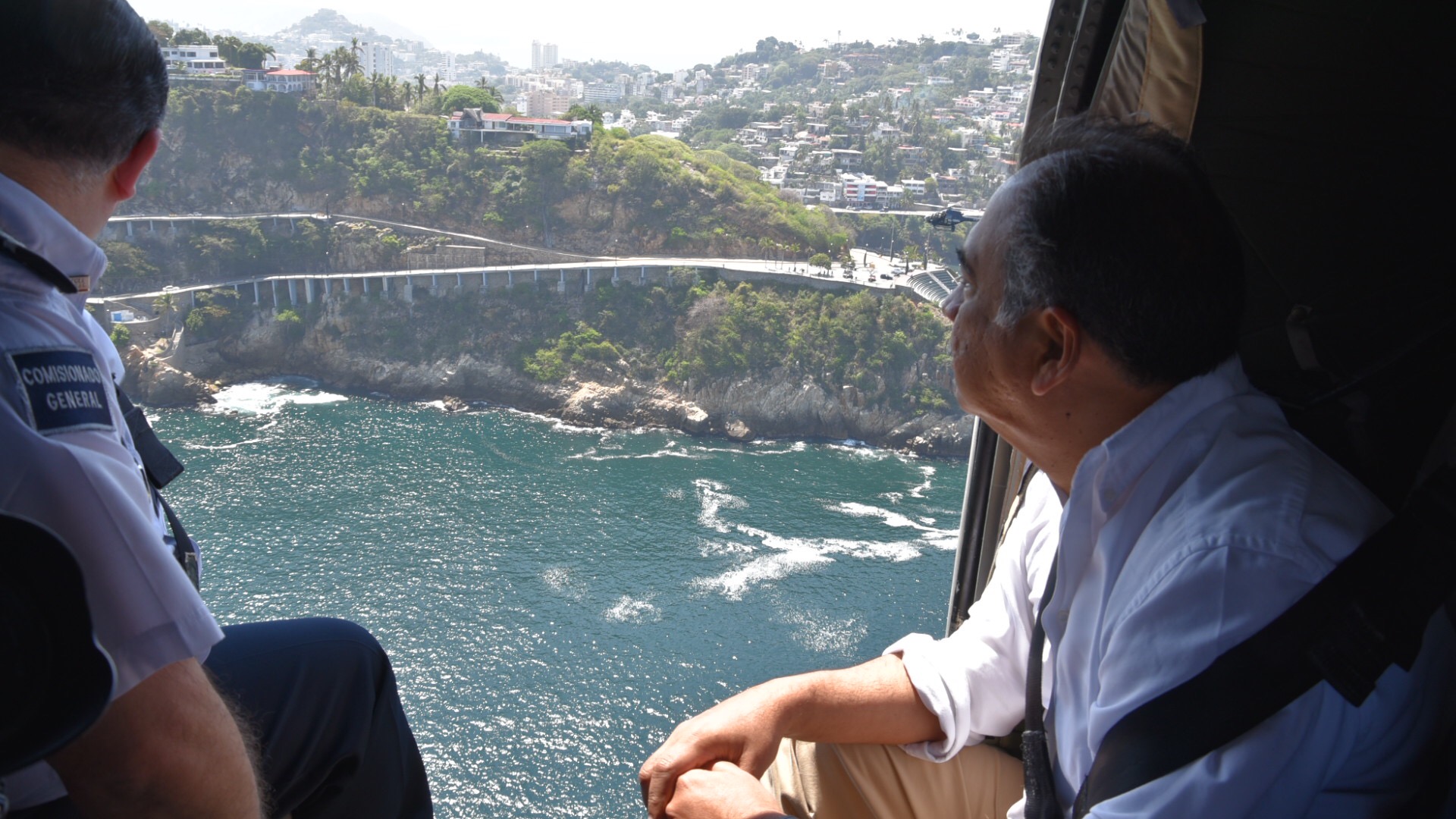 El gobernador Héctor Astudillo y el comisionado general de la PF, Enrique Galindo; realizan recorrido aéreo para constatar las acciones de seguridad implementadas en el puerto de Acapulco
