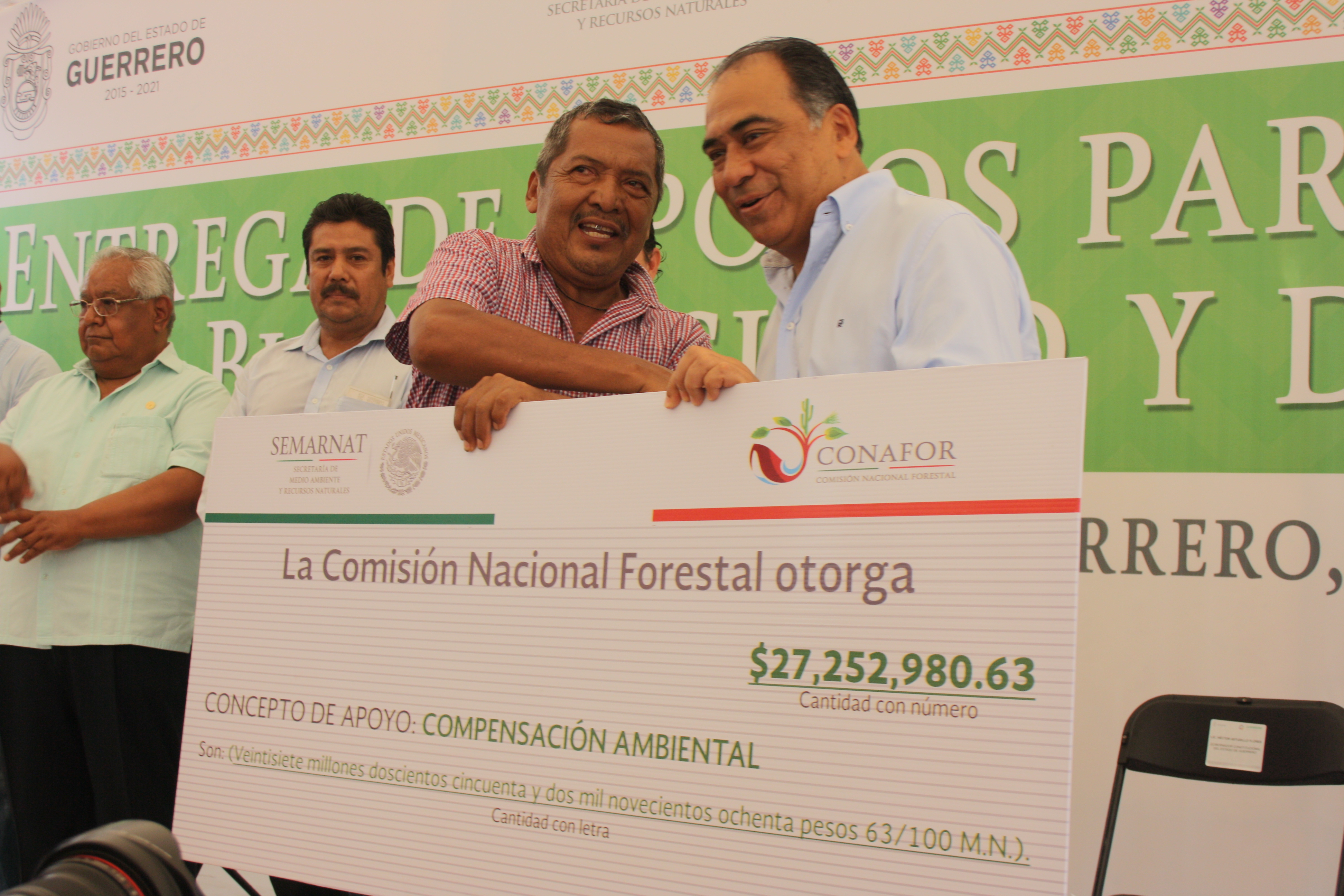 En este sentido dijo que el gobierno del estado está trabajando en temas fundamentales para la conservación del medio ambiente, como es la vigilancia para evitar los incendios forestales. En su intervención, la secretaria de Medio Ambiente y Recursos Naturales (SEMAREN), Karen Castrejón Trujillo dijo que este recurso permite abonar a la conservación y uso sustentable de los ecosistemas, garantizando el bienestar de las futuras generaciones. Anunció que próximamente se dará inicio a un estudio sobre el uso de la biodiversidad en la entidad. Además hizo un llamado al fortalecimiento de la participación de la ciudadanía en estos temas, al mejoramiento de la calidad en los servicios ambientales a fin de garantizar el bienestar para las familias guerrerenses. A nombre de los beneficiarios, Efrén Jaimes Cortés agradeció la entrega de estos apoyos, los cuales permitirán redoblar los esfuerzos en el tema del cuidado de los bosques, la flora y la fauna con los que se cuenta en el estado de Guerrero. Asistieron al acto el delegado de la SEMARNAT, Martín Vargas Prieto; los diputados locales, Mauricio Legarreta, Eduardo Cueva y Antonio Alvarado, así como representantes del sector.