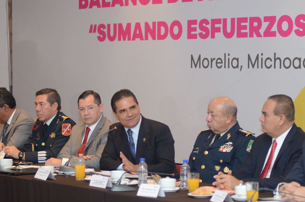 El Gobernador y el secretario Ejecutivo del Sistema Nacional de Seguridad Pública, Álvaro Vizcaíno, presentaron el balance de acciones en materia de Seguridad “Sumando esfuerzos por un mejor Michoacán”, que reflejan decrementos importantes en los diversos rubros.