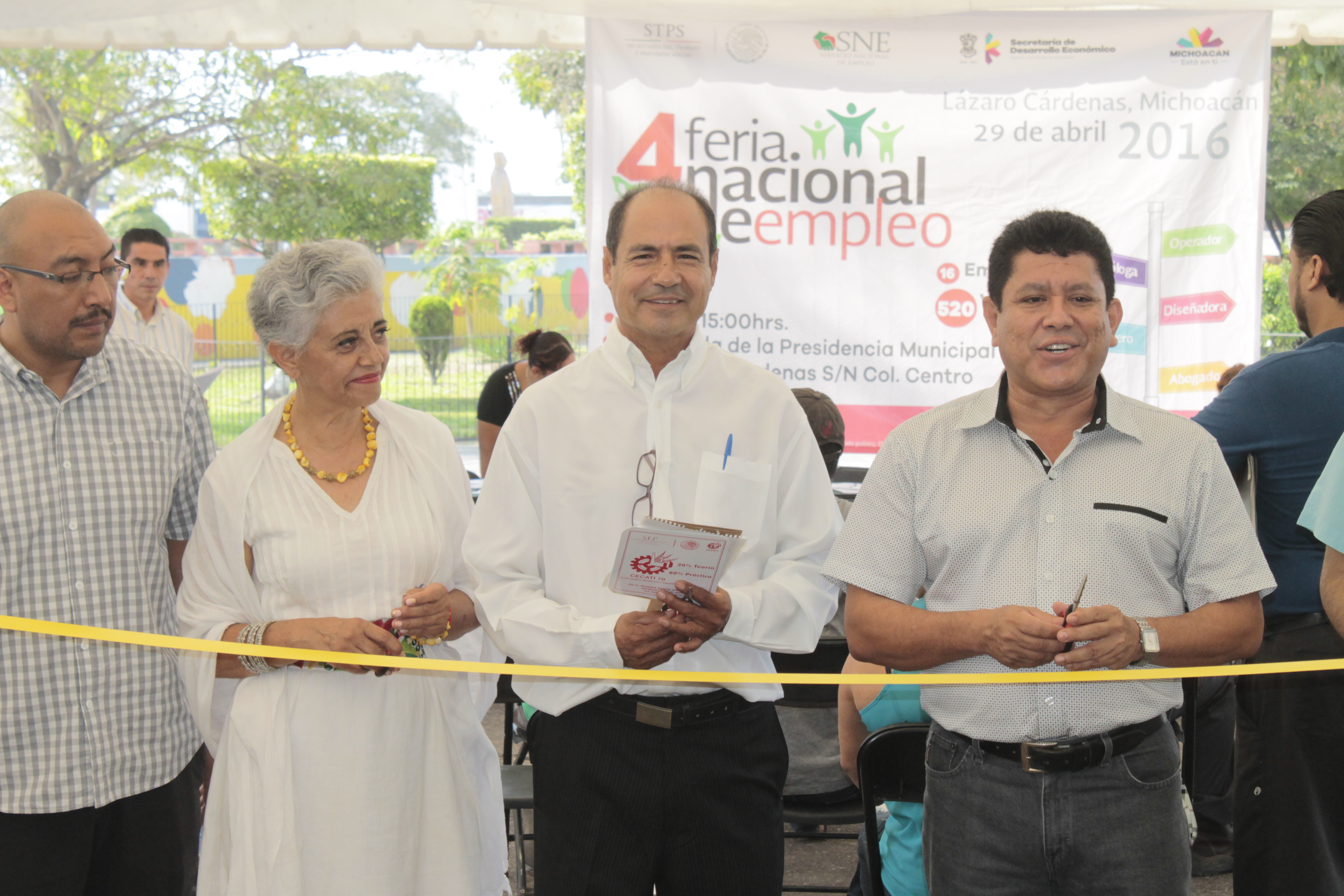 LÁZARO CÁRDENAS, MICH., 29 DE ABRIL 2016.- Ante las expectativas de generación de empleos con la puesta en marcha de la Zona Económica Especial, la región cuenta con mano de obra calificada, incluso superior a la media nacional, dijo el alcalde Armando Carrillo al participar en la apertura de la 4ª Feria Nacional del Empleo en la explanada municipal organizada por los tres niveles de gobierno. Acompañado del titular de la oficina estatal del empleo en este puerto, Adolfo Tovar Ontiveros, Laura Cortez Ramírez, Subdirectora de Vinculación del estado, el maestro Carrillo Barragán recalcó que el municipio cuenta con potencial en mano de obra especializada gracias a escuelas prestigiadas del nivel medio y superior. “Pero también podemos presumir la mano de obra especializada que se refleja en la construcción y operación de las grandes industrias asentadas en el puerto, lo que nos permite asegurar que superamos la media nacional en este y otros renglones”. Por su parte, Adolfo Tovar Ontiveros, titular de la oficina regional del Empleo que administrativamente depende de la Secretaría de Desarrollo Económico del estado, dijo que esta 4ª Feria Regional ha superado las expectativas gracias a la buena disposición de las micro, pequeñas y grandes empresas participantes y que se superó la oferta de fuentes de trabajo llegando a 550 vacantes por cubrir. Por su parte Laura Cortés Ramírez, Subdirectora de Vinculación Laboral en el Estado, coincidió con las palabras del jefe de la comuna Armando Carrillo, enunciando que gracias al esfuerzo del gobierno federal, estatal y de la localidad es que se pueden traer este tipo de beneficios, enmarcó que la sociedad porteña está configurada en su mayoría por personas formadas en lo técnico y mecánico, lo que supone una ventaja en cuanto a los perfiles que buscan las factorías, pequeñas y medianas industrias, por lo que resaltó también la bondad de pertenecer a una Zona Económica Especial. Finalmente Adolfo Tovar Ontiveros, titular del SNE en la localidad, agradeció las atenciones y facilidades que otorgó el presidente Armando Carrillo para concretar esta expo feria del empleo. También existen avances sustanciales en cuanto a la colocación de personas en puestos laborales dentro de los cuatro meses que lleva gestionando al frente de la dependencia, anunciando que 66 jóvenes han recibido Capacitación y Productividad Laboral (CPL), lo que ha permitido, dijo, que 80 por ciento de adiestrados han sido contratados por la empresa, informando que nuevamente el 19 y 16 de mayo volverán a recibir adiestramiento CPL. En el evento estuvieron presentes el Director del Instituto de Capacitación para el Trabajo del Estado de Michoacán (ICATMI), César Ponce Ortega; el Secretario del Ayuntamiento de Lázaro Cárdenas, Lic. Guillermo Godoy Escalante; Marco Antonio Gutiérrez García, encargado de Ferias de Empleo en la zona costera; Lic. Rafael Solís Pérez, Director de Seguridad Pública Municipal; el Secretario Técnico del Ayuntamiento, Maestro Ángel Mario Isasaga Peres y el secretario particular del Alcalde, Maestro Manuel Jacinto de la Paz. Así como los regidores: Guillermo López Villalobos y Artemio Yáñez Núñez, además de los representantes de las empresas que ofertaron vacantes en los 30 stands que estuvieron disponibles para que el público pudiera observar su oferta de trabajo.