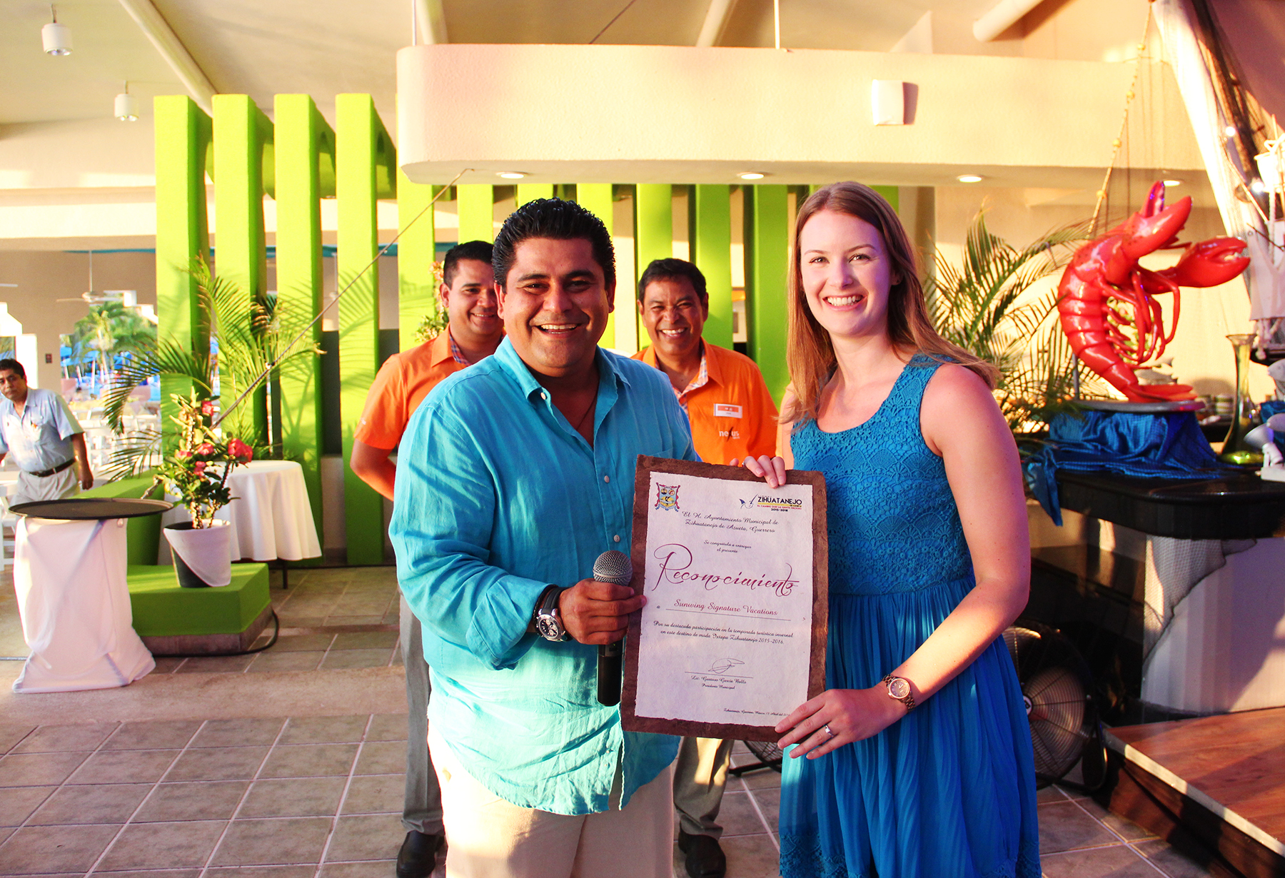 El secretario general del Ayuntamiento, Homero Rodríguez Rodríguez, en representación del presidente municipal, Gustavo García Bello, entregó un reconocimiento a Keltie Guilmer, Gerente de Desarrollo de negocios de la compañía Sunwing Signature Vacations, por traer alrededor de mil turistas por semana desde diferentes lugares de Canadá, desde diciembre hasta el mes de abril, cifra que se fue incrementando año con año a comparación de cuando iniciaron hace cuatro años. En una recepción que se llevó a cabo en el hotel Azul Ixtapa, el encargado de la política interna del gobierno municipal, dijo que el arribo de turistas impacta de manera favorable a este destino, ya que se ven beneficiados hoteles, restaurantes y los prestadores de servicios turísticos, “”entre más visitantes tengamos, le irá mejor a Zihuatanejo”, afirmó el funcionario al tiempo de dar a conocer que se está brindando todo el apoyo para que estos vuelos se adelanten y comiencen a llegar desde noviembre.