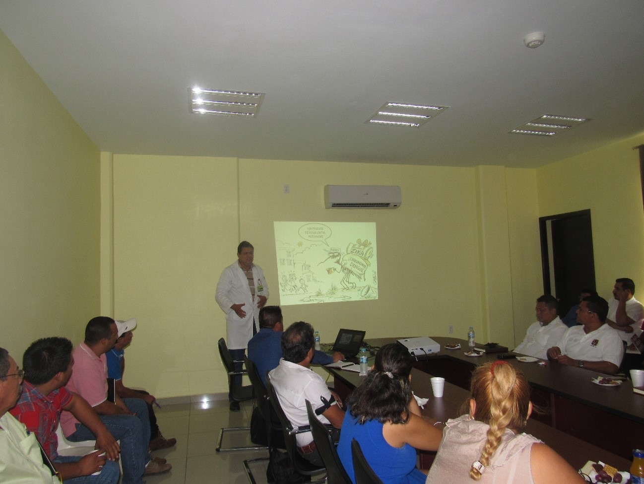EL DIA 25 DE MAYO DEL 2016, A LAS 9:30 A.M. CON LA FINALIDAD DE QUE RECIBIERAN UN CURSO DE CAPACITACION EN MATERIA DE SALUD, EN ESPECIFICO SOBRE LA EPIDEMIA DE DENGUE,CHINKUNGUNYA Y SIKA , PARA QUE SEAN PROMOTORES DE SALUD VOLUNTARIOS EN EL MUNICIPIO, APARTE DE LA RESPONSABILIDAD CONFERIDA ,CONVOCA A TODOS SUS COLABORADORES DE CONFIANZA. A LA SALA DE CABILDO DONDE EL DR. EPIDEMIOLOGO DEL HOSPITAL DEL IMSS PROPERA UBICADO EN EL CRUCERO DE LA UNION, JANAY AYALA LUCAS IMPARTIO UNA PLATICA ILUSTRADA SOBRE EL ORIGEN DE LAS ENFERMEDADES ANTES MENCIONADAS PROVOCADAS POR LOS PIQUETES DE SANCUDOS ( AEDES AEGYPTI) PARA QUE TENGAN LOS CONOCIMIENTOS BASICOS SOBRE ESTAS ENFERMEDADES , Y ACCIONES PREVENTIVAS PARA EVITAR QUE LLEGUEN A LAS FAMILIAS UNIONENSES . ESTUBO PRESENTE EL DR.JESUS TORRES GUTIERREZ COORDINADOR DE SALUD MUNICIPAL Y DESPUES DE COMPARTIR PREGUNTAS POR LOS PARTICIPANTES Y ACLARADAS POR EL EXPERTO, DIO POR TERMINADA SU PLATICA INTENSIVA DE ESTA ENFERMEDAD QUE SI NO SE ATIENDE A TIEMPO PUEDE PROVOCAR LA MUERTE. TAMBIEN SE DIO A CONOCER UN PROYECTO PARALELO AL QUE ESTA LLEVANDO LA SECRETARIA DE SALUD EN LA COMUNIDAD DE TRONCONES, LA COLOCACION DE OVILLANTAS PROYECTO PATROCINADO POR LA SOCIEDAD EXTRANJERA, ENCABESADO POR EL MATRIMONIO DEWEY MCMILLIN Y JILL EDWUARDS , ASESORADO POR EL DR. GERARDO ULIBARRI DE LA UNIVERCIDAD DE CANADA. EN SU MENSAJE EL EDIL DIJO A LOS RESPONSABLES DE LA COORDINACION DE LA SALUD EN EL MUNICIPIO, QUE ESTABA EN LA MEJOR DISPOSISION DE COLABORAR CON LOS DISTINTOS PROGRAMAS Y EN ESPECIAL EL DE LA CAMPAÑA DE PREVENCION DEL DENGUE, CHINKUNGUNYA Y ZIKA, GRACIAS AL APOYO DE MIS REGIDORAS Y REGIDORES Y POR ESO CONVOQUE A TODOS LOS DIRECTORES, SUBDIRECTORES Y JEFES DE AREAS PARA QUE NOS SUMEMOS AL TRABAJO DE CONCIENTIZACION Y LAS DISTINTAS ACCIONES PREVENTIVAS QUE LA GENTE PUEDA REALIZAR EN SUS COMUNIDADES PARA EVITAR QUE ESTA ENFERMEDAD LLEGUE A NUESTRAS FAMILIAS, POR QUE LA SALUD ES RESPONSABILIDAD DE TODOS, NO NADA MAS DE LOS DOCTORES Y ENFERMERAS DIJO ROSAS RUIZ.. DE IMEDIATO DIO INSTRUCCIONES AL DR. GILDARDO ZEQUEIDA GARCIA DIRECTOR DE SALUD MUNICIPAL, PARA QUE HICIERAN EL PLAN DE TRABAJO CON LOS RESPONSABLES DE SALUD Y SE ME HAGA LLEGAR ALA BREVEDAD POSIBLE PARA INTENSIFICAR LOS TRABAJOS. LO ACOMPAÑARON SU HONORABLE CUERPO DE REGIDORAS Y REGIDORES, DIRECTORES, SUBDIRECTORES Y JEFES DE AREA COMPROMETIENDOSE A SUMARSE AL TRABAJO PARACUMPLIR CON EL TRABAJO CONTRAIDO POR NUESTRO PRESIDENTE MUNICICIPAL.