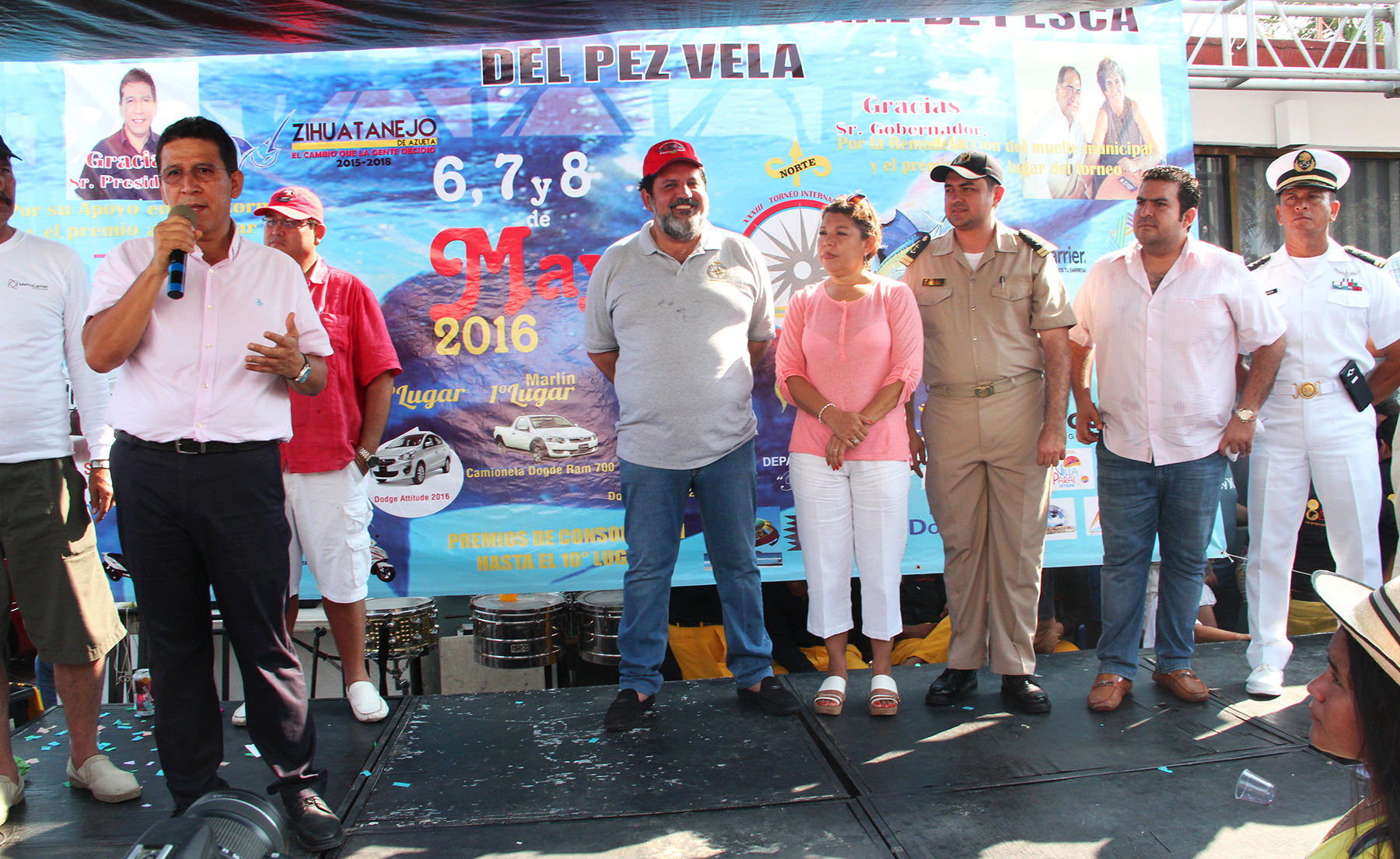 Zihuatanejo, Gro., 8 de mayo de 2016.- El presidente municipal Gustavo García Bello y el Jefe de la Oficina del Ejecutivo estatal, Alejandro Bravo Abarca, encabezaron este domingo la ceremonia de premiación a los ganadores de los primeros lugares de la edición número 33 del Torneo Internacional de las Pesca del Pez Vela Ixtapa-Zihuatanejo, organizado por la Sociedad Cooperativa de Lanchas de Recreo Y Pesca Deportiva “Teniente José Azueta”.