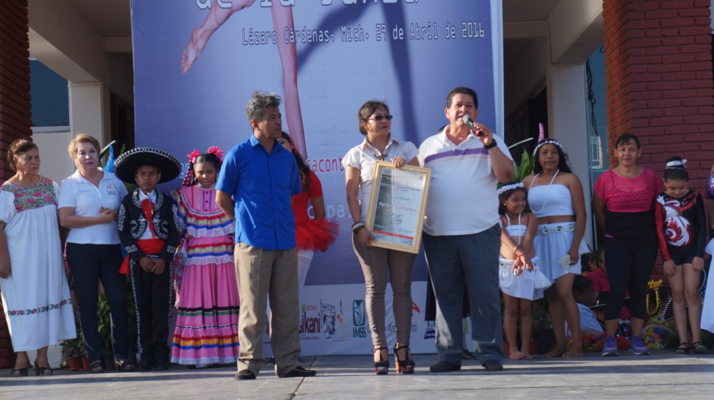 LÁZARO CÁRDENAS, MICH., 01 DE MAYO.- Ante un gran número de familias, se llevó a cabo el Día Internacional de la Danza en la explanada municipal, evento al que asistieron 26 grupos de diferentes centros culturales del municipio. el acto festivo fue organizado por Casa de la Cultura “José Vasconcelos”. En su mensaje el presidente municipal, Armando Carrillo Barragán, destacó que para lograr un cambio positivo en el municipio es importante apostarle a la educación y a la cultura, por ello la importancia que las familias cardenense aproveche este tipo de eventos que se realizan de manera gratuita ya que esto favorece a que los niños y jóvenes puedan interesarse en las bellas artes y practiquen alguna actividad cultural que favorezca a su educación. Lo anterior fue manifestado a través del secretario particular del alcalde, Manuel Jacinto de la Paz, quien reitero que todas las culturas en el mundo tienen en común la danza, ya que esta existe desde hace muchos siglos. Por su parte Ana Teresa Nuve Meza, directora de Casa de la Cultura “José Vasconcelos”, destacó que en el municipio existen muchas personas quienes de manera independiente han trabajado en la promoción de la cultura en el municipio, es por ello que durante los festejos del Día Internacional de la Danza, se reconocerá a las personas quienes han dejado huella en el fomento de los diferentes estilos de danza en el municipio. En este sentido durante el evento se entregó un reconocimiento muy especial al maestro Lorenzo Rosales de los Santos por cumplir 25 años de promover la cultura y poner en alto el nombre del municipio fuera de las fronteras del estado, siendo uno de los impulsores del Día de la Danza en el Municipio. De igual forma se homenajeo a la maestra Rosa Carmina Rumbo, originaria de Playa Azul, fundadora del grupo Comunal “Las Panaderas”, baile que han llevado a distintas partes del país haciendo reconocer el talento y cultura de las mujeres de este municipio y la directora del Centro Cultural “La Parota”, Concepción Talavera Ortiz, quien aún está de plácemes por haber hecho cumplir los primeros 16 años de este sitio cultural, tiempo durante el cual ha trabajado en el fomento a las bellas artes en la tenencia de La Mira y comunidades aledañas. Por su parte los tres promotores culturales homenajeados agradecieron al presidente, Armando carrillo Barragán por hacerles este homenaje y el brindar las facilidades para que se siga fomentando la cultura en el municipio.