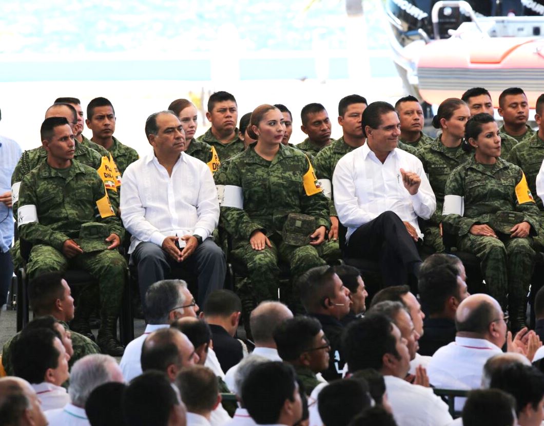 Campeche, Campeche, 6 de mayo del 2016.- El gobernador Héctor Astudillo Flores, asistió a la reunión Nacional de Protección Civil, presidida por el Presidente de la República, Enrique Peña Nieto, con motivo del 30 aniversario de este sistema, que tiene como principio ofrecer a la ciudadanía métodos de prevención, auxilio y recuperación ante los desastres naturales a través de programas y acciones. Lo anterior en el contexto del inicio de la temporada de lluvias y ciclones tropicales, en la que se esperan 17 ciclones tropicales en el Océano Pacífico y 13 en el Océano Atlántico para este 2016, por lo que llamó a mantener una coordinación estrecha entre los tres niveles de gobierno. Peña Nieto, subrayó, que dado el reconocimiento de la Organización de las Naciones Unidas al Sistema Nacional Mexicano de Protección Civil, no se debe bajar la guardia y tener una mejor conciencia por los efectos del calentamiento global y el incremento de la presencia e intensidad de fenómenos climáticos, ante esto, indicó que para este 2016 se pronostican 17 ciclones tropicales tan solo en el Océano Pacífico, lo que representa cinco más que el promedio anual. “Hoy debemos prepararnos desde ahora, todas las autoridades que forman parte de este sistema del orden Federal, Estatal y Municipal, para prever y ubicar el funcionamiento de refugios, revisar los sistemas de alertas, poner a prueba nuestros protocolos de emergencia, realizar simulacros y asegurar una permanente y estrecha comunicación y coordinación”, recomendó el Presidente Peña Nieto, quien además señaló que se han destinado mayores recursos al Fondo para la Prevención de Desastres Naturales y se ha agilizado la ejecución del Fondo de Desastres Naturales por más de ocho mil millones de pesos para este año. En su intervención, el Director General de la Comisión Nacional del Agua, Roberto Ramírez de la Parra, recapituló que en 2015 se registraron fenómenos inéditos y en total cuatro ciclones tropicales impactaron de forma directa territorio nacional, al igual que en 2013 con “Ingrid y Manuel” y en 2014 con “Odile”, así mismo, recordó que el huracán “Patricia”, el que en 18 horas pasó de categoría 1 a 5, alcanzando vientos máximos sostenidos de 342 kilómetros por hora, fue el ciclón con una velocidad de viento que jamás se había registrado en todo el mundo. Al evento asistieron los secretarios de Gobernación, Miguel Ángel Osorio Chong, de la Defensa, Salvador Cienfuegos Zepeda; de Marina, Vidal Francisco Soberón Sanz y el coordinador Nacional de Protección Civil, Luis Felipe Puente Espinoza, así como los secretarios de Desarrollo Social, José Antonio Meade Kuribreña; de Desarrollo Agrario, Territorial y Urbano, Rosario Robles Berlanga; de Comunicaciones y Transportes, Gerardo Ruiz Esparza; de Medio Ambiente y Recursos Naturales, Rafael Pacchiano Alamán y el Presidente de la Conferencia de Gobernadores (CONAGO), Gabino Cué Monteagudo; así como los gobernadores de Michoacán, Nayarit, Tabasco, Tamaulipas, Sinaloa y Oaxaca.