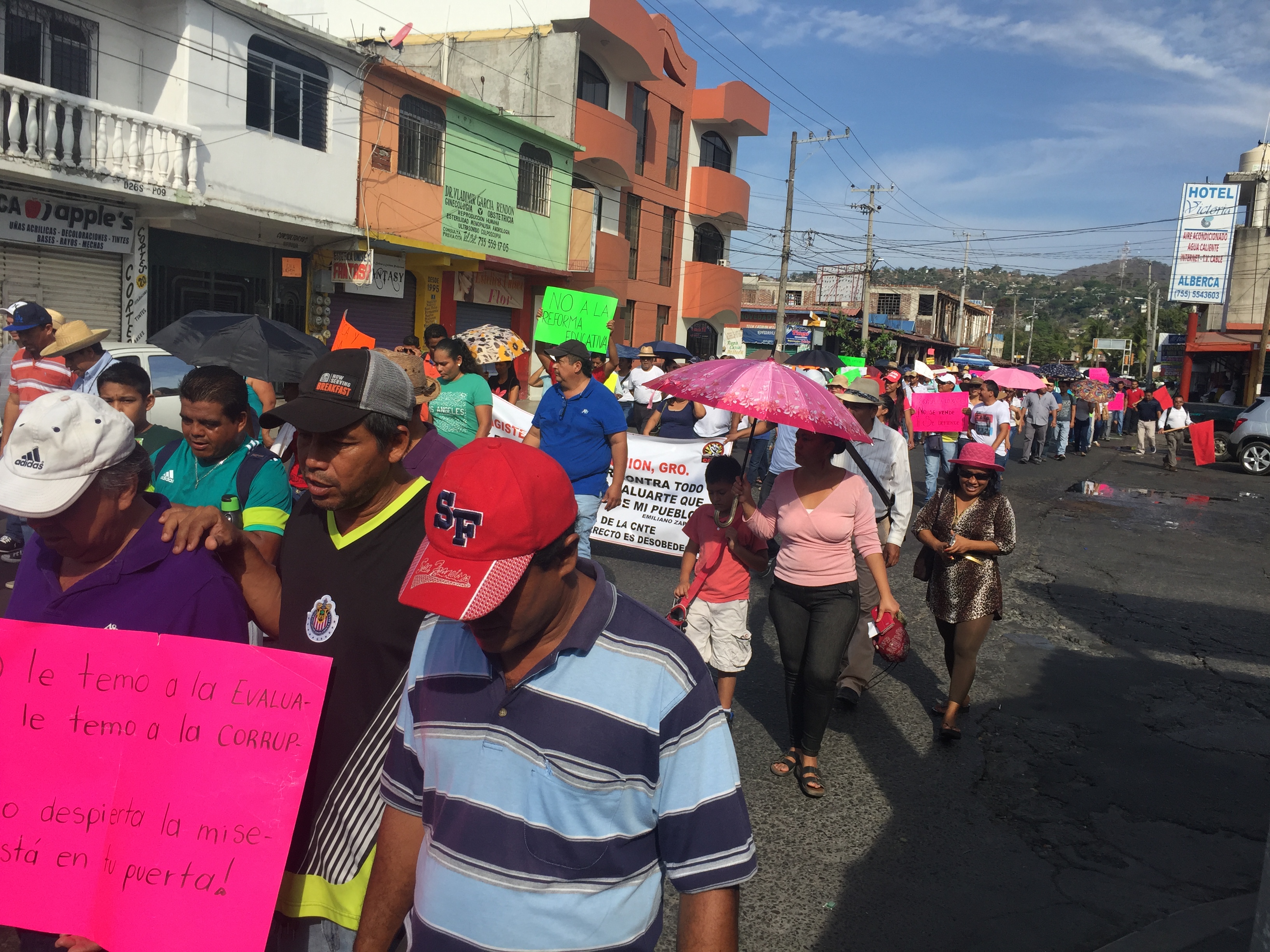 cuándo vamos a volver a clases normales…si hay riesgo de que perdamos el ciclo escolar, porque como ya dije antes falta todavía que avancemos estamos un poquito atrasados y no podemos avanzar de esta forma como es este paro”. Marisol Villalobos, madre de familia, “exactamente ya vamos para finalizar el ciclo y que va a pasar si se les va a dar la boleta o no se les va a dar la boleta si les va afectar en las calificaciones, y si pasan año no sabemos si van a pasar bien”. No obstante el abandono de las aulas, hasta la fecha no se han descontado salarios ni ha habido despidos de maestros en Zihuatanejo. Siguen con las protestas y señalan que debe haber modificaciones a la reforma educativa. Sergio Guinto, vocero de la CETEG en Zihuatanejo, “definitivamente no, estamos a favor de que se evalúe, año con año estamos yendo a cursos nos estamos capacitando, no queremos, que se evalúe, pero que no se evalúe con fines punitivos con fines de castigo”. A menos de un mes para que finalice oficialmente el calendario escolar las protestas y manifestaciones de los maestros disidentes continúan. Raymundo Arroyo, manifestante de la ceteg, “porque más que una reforma educativa se ve que es una reforma laboral, entonces atenta mucho contra los derechos laborales de los compañeros trabajadores de la educación”. A las movilizaciones y abandono de las aulas de los 650 maestros disidentes de Zihuatanejo se suman algunos de los municipios de Petatlan y La Unión, pertenecientes a la región de la costa grande de Guerrero.