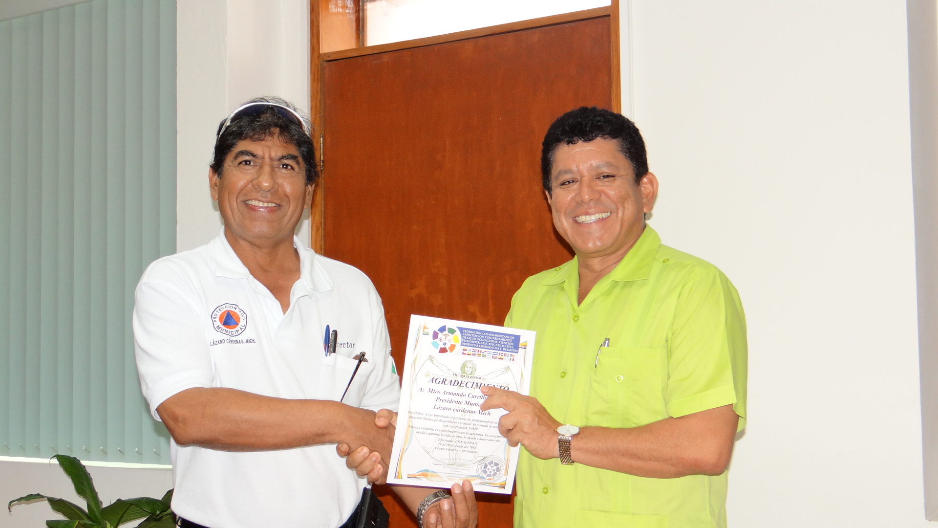 El director de Protección Civil Municipal, Abelardo Bracamontes Maldonado, le hiso entrega del documento al presidente municipal destacando que “gracias a su apoyo se logró la capacitación de los 10 elementos de PCM y 20 más de diversas corporaciones de la localidad y municipios vecinos como Zihuatanejo, Petacalco, Guerrero y de Morelia y Apatzingán.