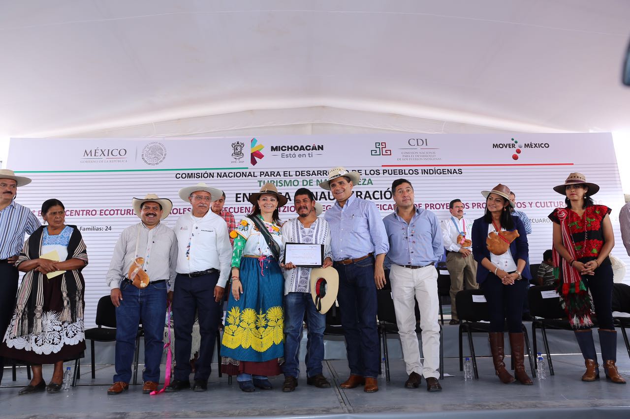 - El mandatario Silvano Aureoles y la titular de CDI, Nuvia Mayorga, inauguran la primera etapa del Centro Ecoturístico Tirolesa Isla Tecuena-Janitzio y la electrificación subterránea del alumbrado público de Janitzio, con una inversión de 7 millones 850 mil pesos.