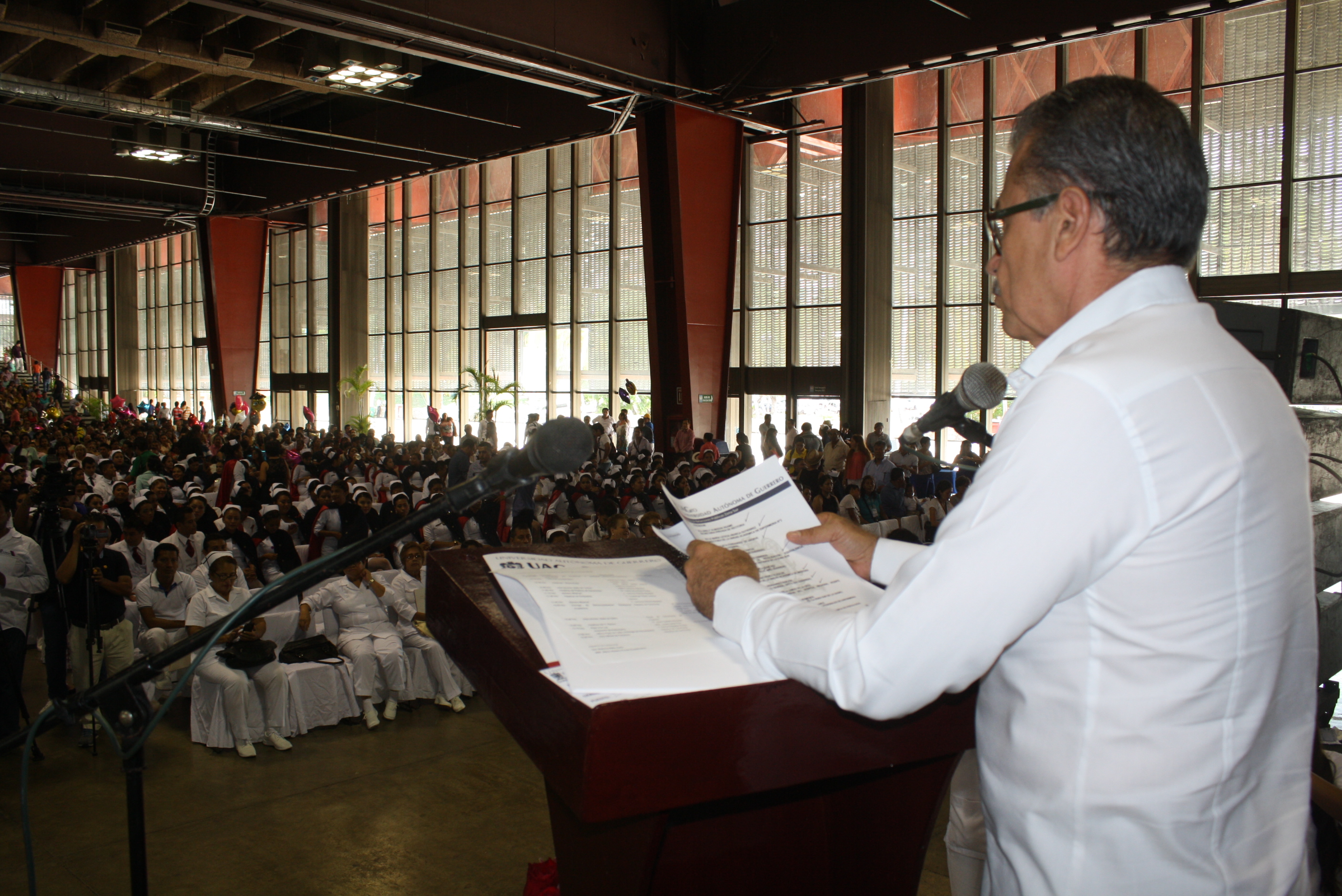 Así lo afirmó el secretario de Salud, Carlos De la Peña Pintos, al asistir a la ceremonia de clausura de fin de cursos julio 2016, de la Unidad Académica de Enfermería No. 2, en representación del gobernador Héctor Astudillo Flores, padrino de la generación. Ante egresados a nivel técnico y licenciatura de la Universidad Autónoma de Guerrero, hizo un reconocimiento a esta casa de estudios por contribuir en la formación de recursos humanos en salud con una visión científica, pero también humanista. Los exhortó a ser pilar fundamental para atender problemas de salud en las comunidades con menores índices de desarrollo humano, por su mística de servicio y disposición a apoyar a las personas, familias y poblaciones que viven en situación de marginación. De la Peña Pintos se dirigió a las familias de los recién egresados para expresarles su agradecimiento, ya que seguramente han sido su respaldo para llegar a este momento y elegir una carrera al servicio de la población mexicana. Por su parte, la directora de la Unidad Académica de Enfermería, Leticia Abarca Gutiérrez, encabezó la ceremonia de “el paso de Luz”, que significa guiar, mediante una lámpara encendida, al profesional en enfermería en su loable labor de atención a quienes sufren dolor y desesperanza. Asistieron también Arely Almazán Adame, en representación del Rector de la UAGro, Javier Saldaña Almazán, la diputada Julieta Fernández de Añorve y el secretario general de la Sección XVII del Sindicato de Trabajadores del IMSS, David Hernández, entre otras personas.