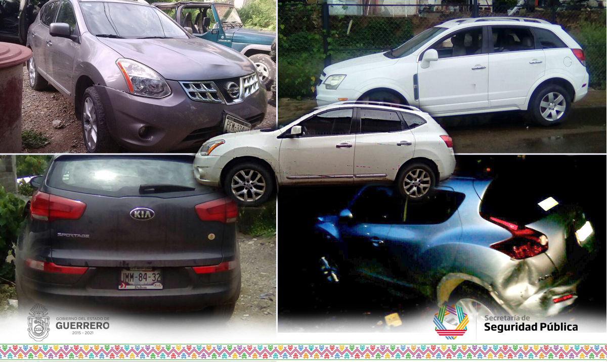 Chilpancingo, Guerrero, 19 de julio de 2016. Elementos de la Policía Estatal y del Ejército Mexicano integrantes de la Base de Operaciones Mixtas, Urbanas y Suburbanas (BOMUS), aseguraron en Zihuatanejo, en distintos hechos, cinco vehículos identificados con reporte de robo, uno de ellos probablemente relacionados con hechos delictivos. Los oficiales quienes realizan de manera permanente recorridos para la prevención del delito en el municipio de José Azueta, localizaron abandonado en la calle Amapolas de la colonia Buenos Aires, un vehículo marca Kia, tipo Sportage, modelo 2016, color gris, placas de circulación JMM-84-32 del estado de Jalisco, y número de serie U6YPB3AA5GL698833; fue identificado con reporte de robo en la base de datos del Registro Público Vehicular (REPUVE), de fecha 13 de julio del presente año. En una brecha de terracería a la altura del puente Huerta III, encontraron abandonado un vehículo marca Nissan, tipo Rogue, modelo 2013, color blanco, placas de circulación UKE-471-P del estado de Querétaro, y número de serie JN8AS58V5DW880924, que también cuenta con reporte de robo en el REPUVE, de fecha 1 de julio del presente año. En tanto, los integrantes de la BOMUS aseguraron en el bulevar Paseo de Zihuatanejo, frente al centro nocturno “Kisses”, un vehículo Chevrolet tipo Captiva, color blanco, modelo 2009, placas de circulación HCZ-13-67 del estado de Guerrero y número de serie 3GNC15372955632252, el cual cuenta con reporte de robo de fecha 16 de julio del presente año ante la Agencia del Ministerio Público del Fuero Común de acuerdo a la carpeta de investigación 12130570400707170716. Asimismo, fue asegurado un automóvil marca Nissan, tipo Rogue, modelo 2013, color gris, placas de circulación PFM-374-J del estado de Michoacán, número de serie JN8AS58V3DW880405, el cual también cuenta con reporte de robo ante la Agencia del Ministerio Público del Fuero Común, según la carpeta de investigación 12130570400707170716. Por último, en el andador Barranca Honda de la colonia Vicente Guerrero, localizaron un vehículo marca Nissan, tipo Juke, modelo 2012, color gris, placas de circulación JSX-40-16 del estado de Guanajuato y número de serie JN1AF55C1CT001764, el cual presenta cinco impactos por proyectil de arma de fuego; al consultar la información de la unidad en la base de datos del REPUVE, resultó con reporte de robo de fecha 13 de julio del presente año. Cabe destacar que los cinco vehículos fueron puestos a disposición ante la autoridad correspondiente para que realice las investigaciones sobre cada uno de los casos, a fin de entregarlos a los legítimos propietarios. Con acciones como esta, la Secretaría de Seguridad Pública del Estado de Guerrero refrenda su compromiso de continuar implementando estrategias encaminadas a prevenir y combatir la comisión de delitos, mantener el orden y la paz públicos, así como salvaguardar la integridad y bienes de la ciudadanía.