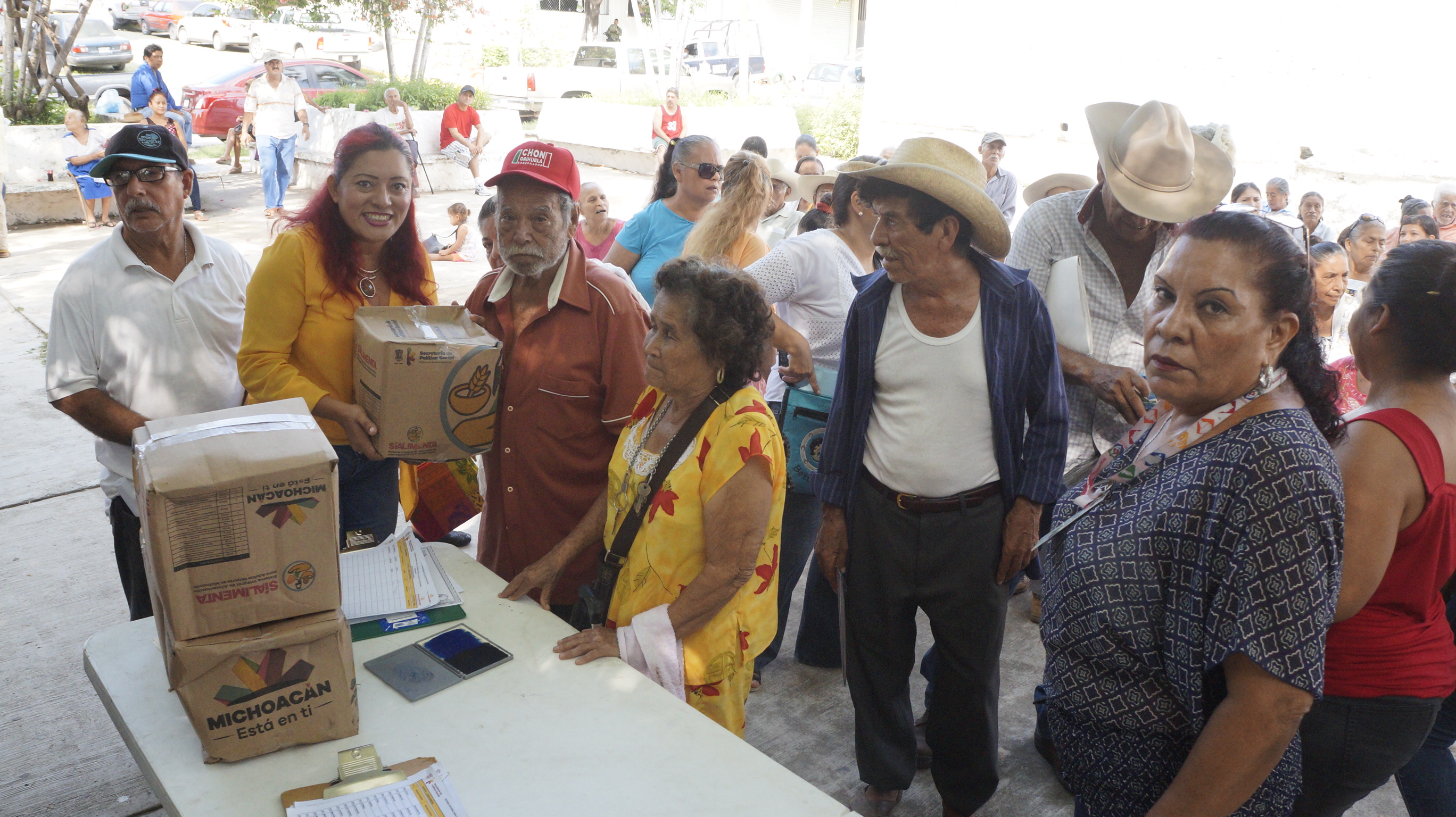 LÁZARO CÁRDENAS, MICH., 15 DE AGOSTO DEL 2016.-Adutltos Mayores de la población de La Mira recibieron este lunes las despensas correspondientes a los meses de marzo, abril, mayo y junio sumando un total de 212 beneficiarios con 848 dotaciones además de entregarse los apoyos del programa 65 y Más por parte del gobierno de la República través de Sedesol. Yolanda Felipe Martínez, jefa del Departamento de Desarrollo Social, informó que en este segundo paquete llegaron 8 mil despensas del programa Si Alimenta, las cuales corresponden a las dotaciones de 04 meses y se han venido entregando en las diferentes tenencias del municipio con lo cual se beneficia a 2 mil personas de la tercera edad en situación vulnerable,. Reveló que este martes a las 10:00 horas se estará haciendo la entrega de despensas en el palacio municipal, además por parte del personal de Sedesol harán la entrega de los apoyos del programa 65 y Más, así como los giros telegráficos a los adultos mayores afiliados a dicho programa federal. Felipe Ramírez, señaló que el programa Si Alimenta, es un programa a través del cual el Gobierno del Estado y el Ayuntamiento, brindan un apoyo de despensas a los adultos mayores ello con el fin de favorecer la alimentación de las personas de la tercera edad en situación vulnerable.