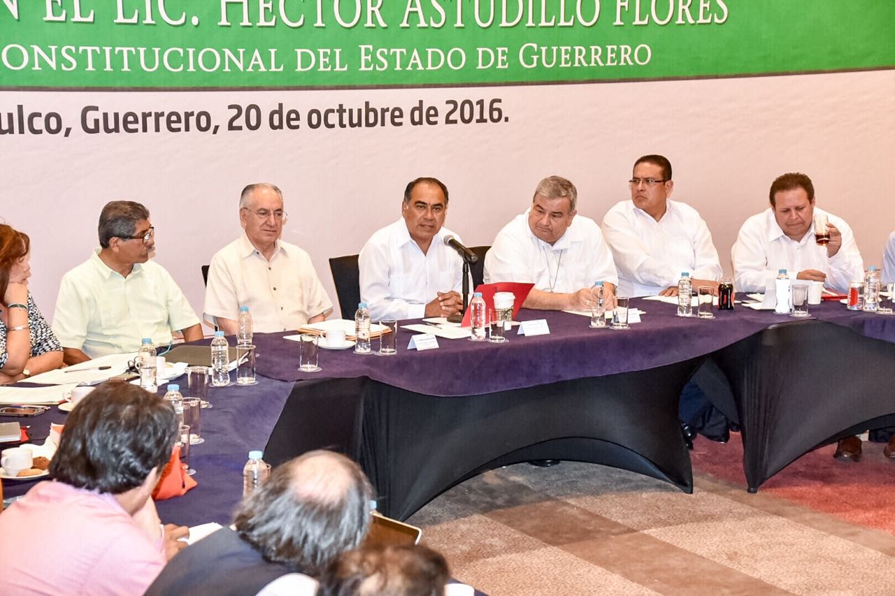 Acapulco, Guerrero, 20 de octubre de 2016.- El gobernador Héctor Astudillo Flores, se reunió con integrantes del Colectivo Guerrero es Primero, institución que reúne a más de cincuenta organizaciones de la sociedad civil, el sector educativo y de representación de las diversas denominaciones religiosas, en la que se busca sumar esfuerzos para consolidar espacios de diálogo y alternativas en busca de la paz, reconciliación y la reconstrucción del tejido social. Con la presencia del secretario general de Gobierno, Florencio Salazar Adame, del arzobispo de Acapulco, Carlos Garfias Merlos y de representantes de instituciones como la Comisión Nacional de los Derechos Humanos (CNDH), el gobernador destacó y se sumó a los trabajos de este esfuerzo, en el que se promueven alternativas para establecer diálogos y acuerdos en temas muy específicos. En su mensaje, Héctor Astudillo se pronunció en favor de consolidar esta conjunción de esfuerzos por un Guerrero en mejores condiciones y sobre todo, para lograr alternativas de solución a las problemáticas que aquejan a la sociedad. “Si ustedes son un vínculo y un vehículo para impulsarlo, es bienvenido”, señaló el mandatario. En este contexto, Astudillo Flores reconoció que aunque la entidad atraviesa en una situación difícil, existe la voluntad para trabajar de manera coordinada con las diversas organizaciones y establecer la labor de acompañamiento necesaria. “Yo creo que estamos en el tiempo en que tenemos que levantarnos. En Guerrero estamos tratando de caminar”, señaló el mandatario, quien además refrendó su compromiso con las diferentes iniciativas que promueven este tipo de acercamientos entre la sociedad y las autoridades para potencializar las oportunidades de promoción del desarrollo a través de diversas acciones de mejora en los distintos rubros. En su intervención, el arzobispo de Acapulco, dijo que todos estos temas pueden convertirse en una oportunidad para consolidar acciones a favor de la sociedad, mediante la estructuración de una agenda que aborde todos los aspectos prioritarios para la población. En este encuentro se propuso la creación del Instituto para la paz en Guerrero, el establecimiento de una agenda para el desarrollo sustentable, la generación de oportunidades para la población. Asistieron a la reunión el visitador general de la CNDH, Ismael Eslava Pérez; los rectores Mario Mendoza, Enrique Pasta y Carlos García, de la Universidad Americana de Acapulco, la Universidad Loyola del Pacífico y la Universidad Campesina del Sur, respectivamente, así como representantes de distintas organizaciones.
