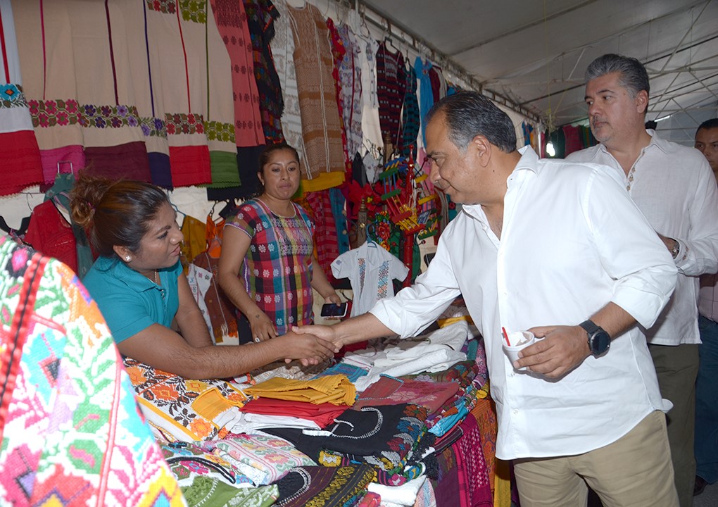Acompañado del presidente municipal, Marco Antonio Leyva Mena, Astudillo Flores constató que en el zócalo se instaló la expo artesanal en la que participan productores y artesanos guerrerenses que muestran y ponen a la venta productos como pan, trajes típicos, nieve artesanal, accesorios.