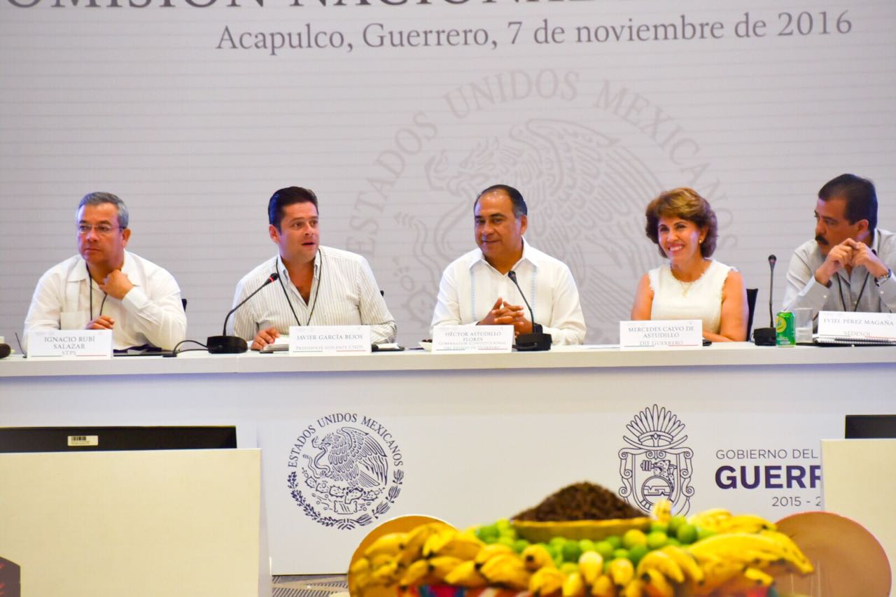 Acapulco, Guerrero, 7 de octubre de 2016.- Al participar en la ceremonia de inauguración de la Tercera sesión de la Comisión Nacional de Desarrollo Social, el gobernador del estado, Héctor Astudillo Flores, dijo que temas vinculados al combate a la pobreza y el establecimiento de estrategias para impulsar a los sectores más desprotegidos, constituyen un reto que debe ser atendido de manera interinstitucional. Con la presencia del subsecretario de Planeación, Evaluación y Desarrollo Regional de la Secretaría de Desarrollo Social (Sedesol) federal, Francisco Javier García Bejos, el gobernador manifestó su compromiso de continuar coadyuvando para establecer una administración en la que se priorice el desarrollo integral de la población. En este sentido, expresó su agradecimiento y colaboración al gobierno federal por la puesta en marcha de programas como Progresa, el cual ha permitido que las familias guerrerenses cuenten con mejor calidad de vida. «En Guerrero el reto es desarrollo social, combate a la pobreza y en eso incluye el tema de la educación, salud, programa sociales y cómo mejorar la calidad de vida de los guerrerenses», expresó el mandatario, quien además destacó las acciones que se han generado en la entidad para atender esta problemática. En su mensaje, Astudillo Flores dijo que es prioritario que los ciudadanos sientan la cercanía de los gobiernos, destacando que durante este primer año de gestión, ha tratado de promover ese acercamiento con los diversos sectores, visitando las diferentes regiones y los 81 municipios, en una estrategia interinstitucional en la que participa no sólo la administración estatal, si no también, las dependencias federales. De igual manera destacó el trabajo enfocado a apoyar a sectores como los adultos mayores, la entrega de uniformes y útiles escolares, la instalación de comedores comunitarios, el apoyo a madres solteras, entre otros, manteniendo siempre un blindaje para que la ayuda llegue a quien realmente lo necesita. Por último señaló que esta reunión significa un evento muy importante, sobre todo, en un estado en el que la atención social es un rubro de gran relevancia. En su intervención, el subsecretario de Sedesol reconoció la labor del gobernador Héctor Astudillo y su impulso decidido para lograr que los acuerdos establecidos en el convenio Por un Guerrero Próspero e Incluyente, den buenos resultados a favor de la población; dijo que se trata de acciones sin precedentes y que buscan sentar las bases de un estado en mejores condiciones y que conviertan al desarrollo social en una política de estado que garantice a la población la posibilidad de ejercer plenamente los derechos establecidos en la Constitución. Asimismo destacó la capacidad y coordinación establecidas para lograr a cabo esta tarea interinstitucional. «Si trabajamos en equipo y si existe reciprocidad, tendremos mejores herramientas para atender este problema. Nos encontramos ante un esfuerzo de coordinación nunca antes visto en materia al combate a la pobreza en todo nuestro país», expresó el representante de la Federación. De igual manera expuso los esfuerzos que se han logrado en el estado, en donde destaca la integración de 140 mil estudiantes a los servicios de seguridad social así como 300 mil personas que ya cuentan con Seguro Popular, la instalación de comedores comunitarios y que 1.5 millones de guerrerenses cuentan con una estufa ecológica. Posteriormente, el mandatario y la directora general del Consejo Nacional para el Desarrollo e Inclusión de las Personas con Discapacidad (Conadis), Mercedes Juan López, signaron un convenio de coordinación para establecer acciones que permitan la inclusión y el pleno ejercicio de sus derechos de las personas que integran este sector. Acompañaron al gobernador la secretaria de Desarrollo Social, Alicia Zamora; el secretario de Salud, Carlos de la Peña Pintos; el jefe de la Oficina del Gobernador, Alejandro Bravo; el diputado federal y presidente de la Comisión de Desarrollo Social, Javier Guerrero García; el delegado en Guerrero de la Sedesol, Armando Soto, así como secretarios estatales y delegados federales especializados en esta materia.