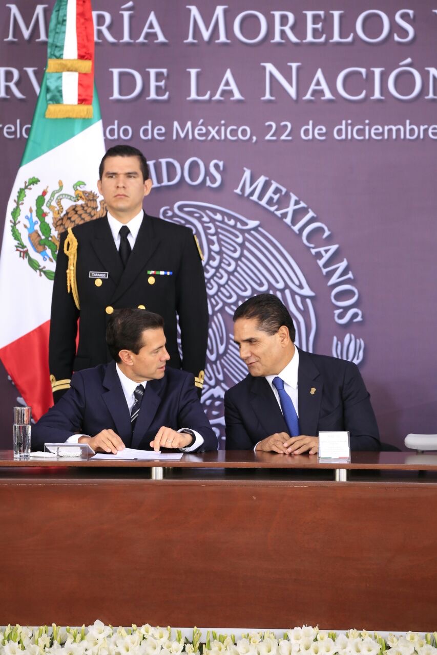 .- El Gobernador Constitucional de Michoacán, Silvano Aureoles Conejo, acompañó este jueves al Presidente de México Enrique Peña Nieto, en el acto con motivo del 201 aniversario de la muerte del Generalísimo don José María Morelos y Pavón. En el evento que tuvo lugar en el sitio donde los imperialistas dieron muerte al Siervo de la Nación, Aureoles Conejo también montó guardia de honor en la estatua que hace homenaje al máximo héroe que ha dado la tierra michoacana y que a decir del Gobernador del Estado, representa uno de los hombres más ejemplares de la historia del país al ser partícipe de la creación de los tres Poderes del Estado Mexicano. En este encuentro, el jefe del Ejecutivo Estatal tuvo oportunidad de conversar con el mandatario federal, sobre los avances de las acciones coordinadas Estado-Federación, para avanzar en la estabilidad social y económica que Michoacán requiere. Como parte de la ceremonia luctuosa, el mandatario michoacano hizo un recorrido por el Museo Casa de Morelos, donde visitó la celda en que fue recluido el Siervo de la Nación antes de su fusilamiento.