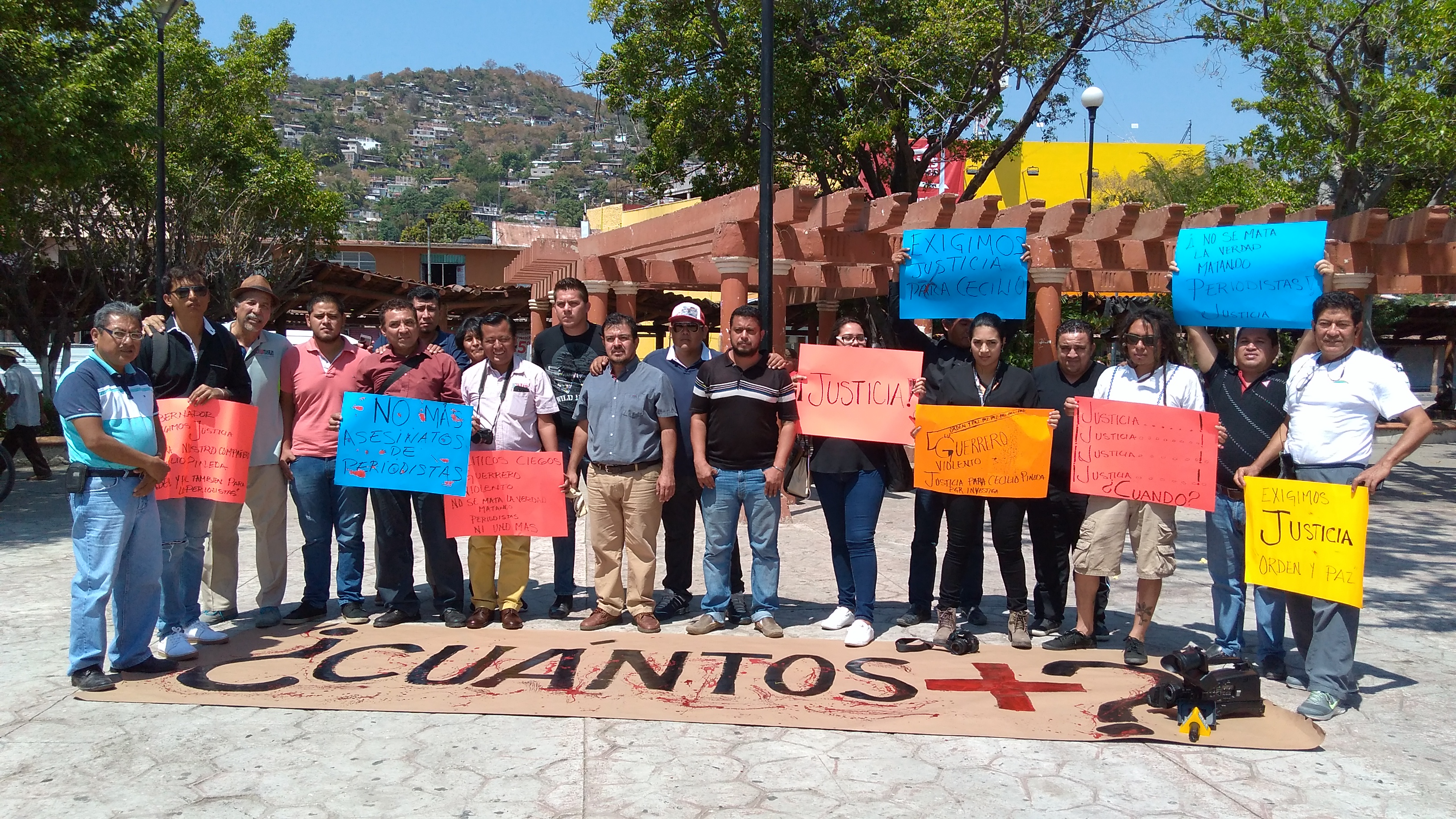 Comunicadores de Zihuatanejo, se manifestaron el pasado viernes, por el asesinato del periodista Cecilio Pineda Birto de la región de Tierra Caliente, en la plaza de la Libertad de Expresión, para luego con pancartas marchar por las calles de Zihuatanejo hasta llegar a la Agencia Central del Ministerio Público del Fuero Común, para exigir a la Procuraduría de Justicia del Estado se investigue hasta dar con los responsables materiales e intelectuales de este artero crímen.