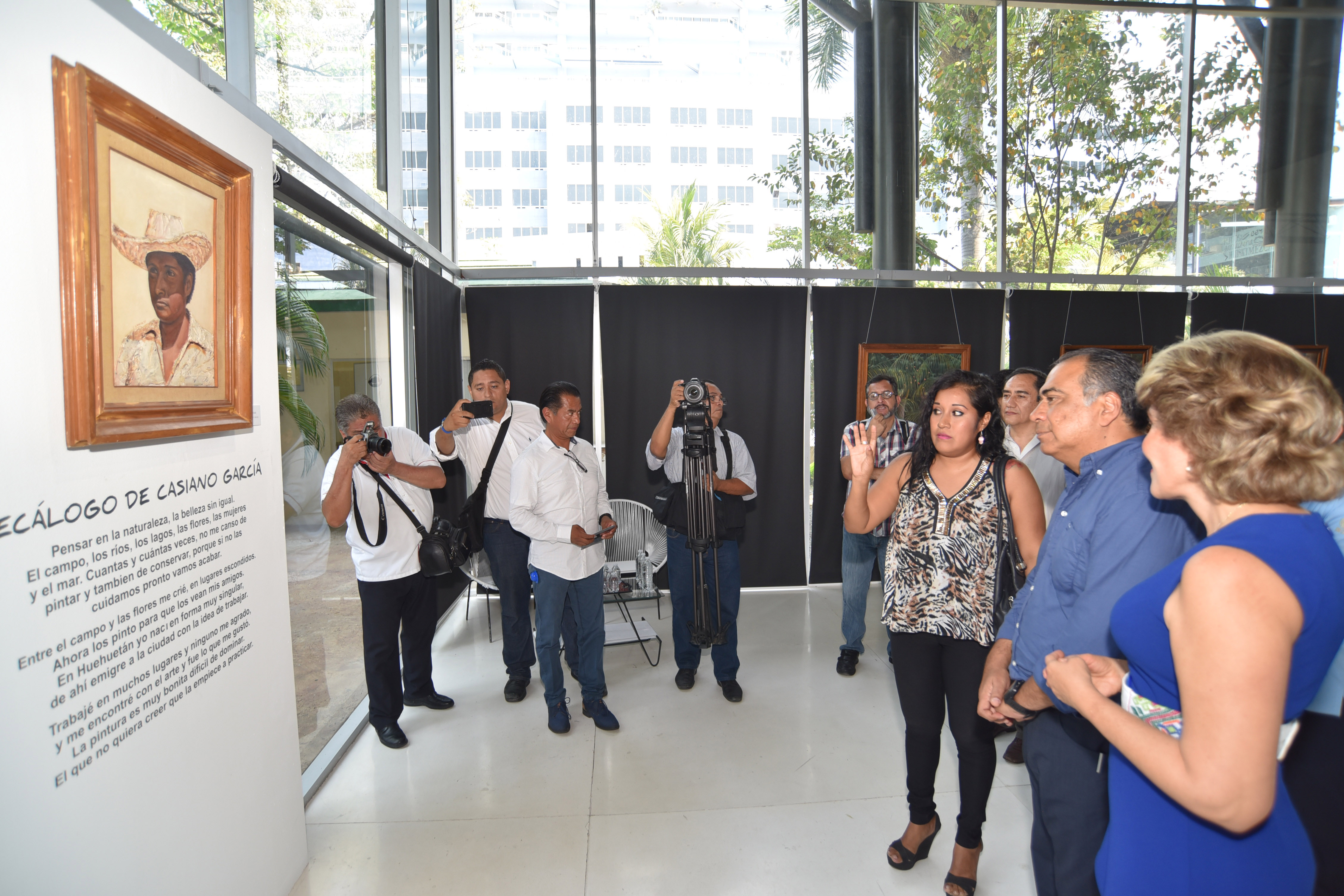 Acapulco., Gro., 18 de abril de 2017.- Cuadros de gran colorido, donde destacan las imágenes del campo, las flores y retratos de familia, abren la exposición del pintor costachiquense Casiano García a la cual asistió el gobernador Héctor Astudillo Flores, acompañado por su esposa Mercedes Calvo. La obra pictórica, misma que se presenta en la Gran Galería del Centro Cultural de Acapulco, ubicado en la costera Miguel Alemán, consta de 36 cuadros y dos murales y estará abierta al público hasta el 23 de abril. El mandatario estatal expuso que el material artístico de Casiano García, oriundo de Huhuetán, municipio de Azoyú, en la Costa Chica, es digna de visitarse y «quiero invitar a todos a que visiten esta exposición, Casiano es un guerrerense que le ha dado mucha cultura, mucha forma al nombre de nuestra tierra con esta obra maravillosa artística». Durante el recorrido por la explosión, Astudillo Flores, se dijo impresionado por el artista costachiquense ya que en sus cuadros al óleo se plasma la belleza del campo, el agua y las flores, en una combinación de colores, así como los retratos de familia. En su visita, el gobernador firmó el libro de visita con una dedicatoria al maestro guerrerense. «Con agradecimiento por presentar su obra al maestro Casiano García, guerrerense costachiquense. Una historia de flores, agua y campo; ¡felicidades siempre! maestro Casiano». La exposición pictórica de Casiano García, se muestra al pueblo en la Gran Galería del Centro Cultural Acapulco, de forma gratuita, donde el público que asista podrá identificar al artista en su trabajo al óleo, la mayoría de flores y campo, estilo característico del pintor, muestra que seguramente cautivará tanto a turistas como a acapulqueños. El Ejecutivo guerrerense, estuvo acompañado por la hija del pintor, Magdalena García, por el secretario de Cultura, Mauricio Leyva y el secretario de Turismo, Ernesto Rodríguez Escalona, entre otros.