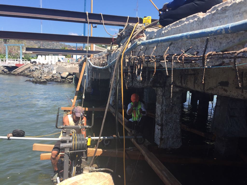 Zihuatanejo de Azueta, Gro., 3 de abril.- El secretario de Desarrollo Urbano Obras Públicas y Ordenamiento Territorial, Rafael Navarrete Quezada, informó que por instrucciones del gobernador Héctor Astudillo Flores se están haciendo trabajos de rehabilitación del muelle principal de Zihuatanejo, previo al inicio del periodo vacacional de Semana Santa.  El funcionario estatal recordó que el lunes 27 de marzo se colapsó una de las plataformas del muelle principal de Zihuatanejo, mismo que fue rehabilitado por este gobierno hace año y medio para recibir a los turistas con instalaciones dignas, ya que el muelle se encontraba en pésimas condiciones que lo tenían fuera de uso y era una  demanda muy sentida.  El Secretario explicó que lo que se hizo en su momento fue una rehabilitación en otra área del muelle más cercana a tierra. Indicó que lo que sucedió este lunes el acero de refuerzo se fue  adelgazando y sufrió fracturas por el intenso movimiento del oleaje y las marejadas como las que se dieron en días anteriores y que es un tema que se repite año con año por los diferentes fenómenos, y que finalmente colapsó la plataforma. Navarrete Quezada comentó que derivado de la  instrucción del gobernador Héctor Astudillo Flores, dos semanas antes  ya se trabajaba en el muelle en donde se realizaban estudios de mareas en la boca de la bahía, estudios  de batimetría, topografía marina, así como el estudio de mecánica de suelos para encontrar el estrato resistente hasta donde debe anclarse los pilotes de cimentación, por lo que inmediatamente la empresa encargada de hacer esos estudios  dio aviso de lo sucedido, además de continuar con dichos estudios que se venían realizando, “se inició inmediatamente con todos los trabajos necesarios que nos lleven a la pronta rehabilitación del muelle”. “Seguimos las instrucciones precisas del gobernador Héctor Astudillo de estar listos para la semana santa, es una prioridad para él”, señaló. Actualmente se demuelen partes de concreto que se vieron afectados por el colapso de plataforma No. 4, además un perito especializado en estructura dictaminará la propuesta de reconstrucción estructural de esta  plataforma pero también dará revisión  al  resto de las plataformas para determinar de ser necesario, realizar la propuesta de refuerzo en el resto de las plataformas.  Dentro de los trabajos se construirán nuevamente las trabes y cabezales de pilotes con concreto de alta resistencia y adecuado para estos ambientes.