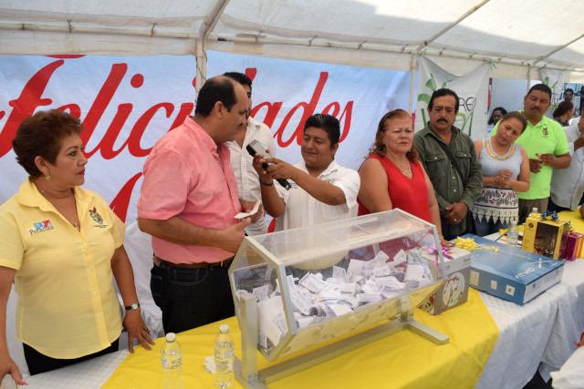 Petatlán, Gro; el día de ayer 15 de mayo se llevó a cabo el sorteo de la rifa de una casa del programa “Esta casa es mía y en coordinación con el programa “Habitad por la humanidad en la explanada municipal que dono el gobierno municipal que encabeza el primer edil Arturo Gómez Pérez” participaron más 7000 madres del todo el municipio de Petatlán que depositaron su boleto dentro de la tómbola dicho boletos fuero entregado en los tres diferentes eventos que fueron Coyuquilla Norte, San jeronimito y Petatlán donde se le festejo el día de las madres . El sorteo se trasmitió en vivió por la radio estéreo vida en el 90.5, Donde estuvo presente para dar fe y legalidad al sorteo sindica Angélica García Vargas, el regidor de salud Manuel Salvador Cadena Galeana, Regidor de Turismo Prof.: Francisco Cesar Gonzáles Avilés, Regidora de Educación y Cultura Yolanda Hernández Sierra, Regidora de Participación Social Ma. Victoria Peñaloza Izazaga, la Regidora de comisión de comercio María Sandra Solís y público en general. En dicha rifa se sortearon 5 números de los cuales el numero ganador fue el quinto que perteneció ganadora la C. Incy Keyci Flores Calderón habitante de San Jeronimito de la Colonia Caña de Agua y madre de una pequeña de un año cinco meses comento “Yo vivo en San Jeronimito y la verdad es que llegue un poco tarde al evento ya que el día sábado tenía que trabajar y no pude asistir al evento de “San Je” además de que hizo extenso su agradecimiento a la primera dama la Sra. Leticia Rodríguez de Gómez y al Primer Edil Arturo Gómez Pérez mencionó “gracias presidente gracias señora Lety porque con este sorteo me cambiaron la vida y la de mi familia”.