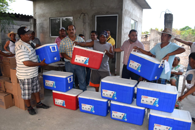 Petatlán.- El pasado lunes 8 de mayo, el alcalde visitó un grupo de pescadores de san jeronimito, los cuales le habían venido solicitando el apoyo, ya que debido a los escases de agua en la laguna, hay poco pescado y esto viene a perjudicar en la economía de sus familias, debido a la falta de trabajo en estos meces próximos y que solicitaban al presidente trabajo temporal para esta temporada. Por su parte el primer edil comentó que la carencia de agua en los ríos que a traviesan el municipio, como lo es el “Rio de San Jeronimito” y el rio de Petatlán es un tema generalizado en la costa grande y en todo el país, en una situación de poca agua, debido a que se están presentado tiempos de sequía y además la quema de potreros y montes, ocasionando un calentamiento adicional provocando que se evapore la laguna más rápido de lo normal, enfatizó que como gobierno su única responsabilidad no es realizar obra, sino también de resolver problemas ”como este”. Además el acalde les entrego 10 hieleras para la cooperativa, para que cuando la situación se normalice pudiese utilizarlas y mejorar la forma de trabajo, por otra parte les apoyo para la rehabilitación del camino, que conduce hacia la laguna y la presidenta del DIF, Leticia Rodríguez de Gómez les hizo llegar despensas para los pescadores las cuales el presidente hizo en su representación su entrega. Concluyo que en el tema de “trabajo temporal” es una situación que como gobierno municipal no se puede solventar, ya que en ninguna de las bolsas de recurso que percibe el H. Ayuntamiento llega el concepto de “empleo temporal”, pero que no los dejara solos, y que juntos con ellos y la asesoría que les brindaran con el coordinador de desarrollo económico del municipio de Petatlán, y a su experiencia como gestor y buenas relaciones en diferentes dependencias gubernamentales que pueden solventar dichos empleos temporales como, SEDESOL, SAGARPA, SEMARNAT, SCT para el tema de los caminos, SEDATU y Gobierno del Estado, esperá poder resolver su situación.
