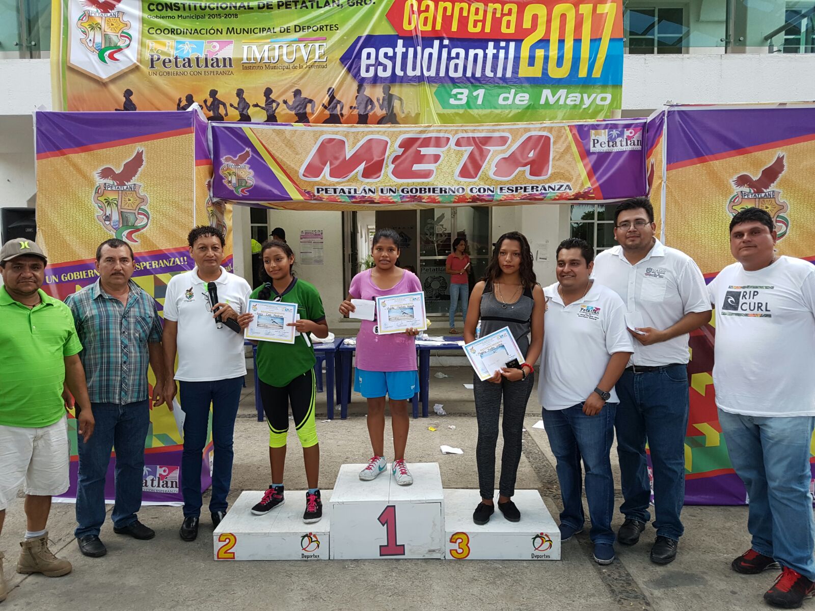 Petatlán Gro; El pasado miércoles se llevó a cabo la Carrera Estudiantil 2017 y la Carrera de Ciclismo en su segunda edición que en coordinación realizada en el municipio de Petatlán que con el Gobierno Municipal e IMJUVE fue lograda con éxito, en dicho evento participó el plantel CECYTEG 05 Petatlán, el Colegio de Bachilleres, la Preparatoria #25, la escuela Secundaria Quetzalcóatl y la escuela Secundaria Vicente Guerrero el punto de partida fue en el Zócalo de la Cabecera con un total de 196 participantes, dichas competiciones constaban de un recorrido de atletismo con una distancia de 8 kilómetros en donde los primeros lugares se los llevó la Petatleca Karla Mendoza Vázquez de la categoría femenil 17 a 20, así como Virginia Marines Adame y en la categoría varonil fue Felipe de Jesús Ayala de la categoría 17 a 20 y Víctor Mojica Rosas y en ciclismo de “La Ruta a Valentín 20KM” los ganadores de la categoría Varonil 17 a 20 Kevin Solís Manzo, Antonio Ramos rosas de la categoría 14 a 16 y en la categoría femenil la única persona en terminar el recorrido fue Itzel Alejandra Hernández, en total se hizo entrega de 12 premiaciones.Por su parte el Director de Deportes Carlos Vélez y el director de IMJUVE Francisco Astudillo comentaron que por instrucciones del primer Edil Arturo Gómez Pérez seguirán promoviendo el deporte en el municipio ya que para el gobierno los jóvenes son prioridad.
