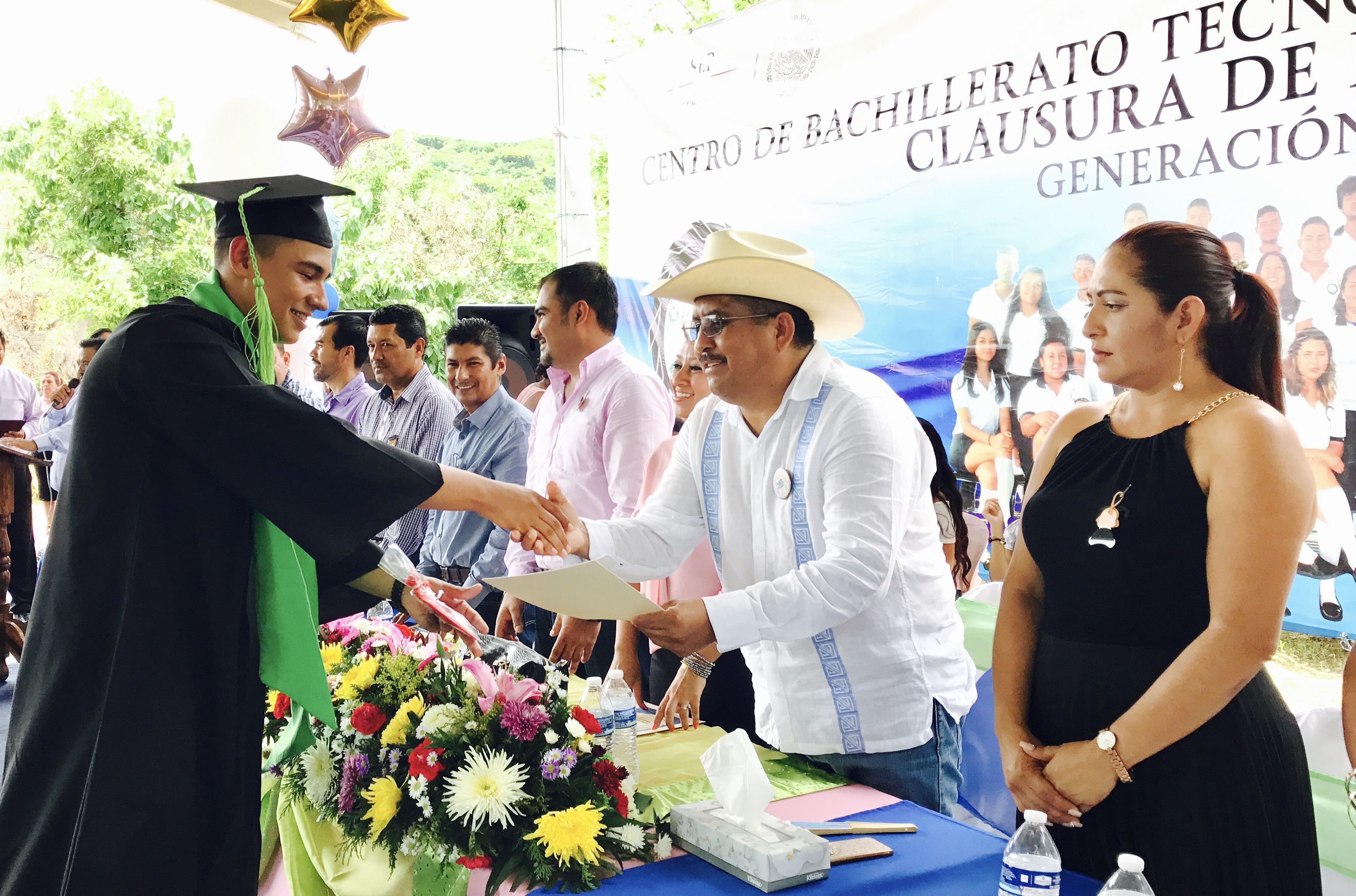 director del plantel, Jaime Chávez Pinzón, acuerdos para proyectar una obra que beneficie a todo el alumnado de dicha institución, posteriormente se hicieron entrega de las constancias de evaluación teniendo como testigo al representante del rector de la UAGro, Sevando Rojas Valencia, quien clausuró los trabajos de la Generación 2014-2017. De igual forma acudió a la clausura del fin de cursos del Centro de Bachillerato Tecnológico Agropecuario No.1, Generación 2014-2017, en donde reconocieron los educadores el compromiso de la autoridad municipal para apoyar a las institución con la construcción de un pozo profundo y la donación de la bomba para efectuar con el vital líquido las labores educativas en beneficio de todo el alumnado. Ya en la Escuela Primaria Benito Juarez de la cabecera municipal, Rosas Ruiz, afirmó que existen escuelas donde el Gobierno municipal, ya dejó huella al entregar la construcción de aulas, laboratorios de cómputo totalmente equipados, «estaremos trabajando para llevar ese respaldo a cada uno de los planteles» antes de concluir con su mensaje el mandatario municipal, reconoció esfuerzo que realizan los pases de familia para sacar sus hijos adelante, por qué solo invirtiéndole a la educación tendremos un municipio más próspero, concluyó.
