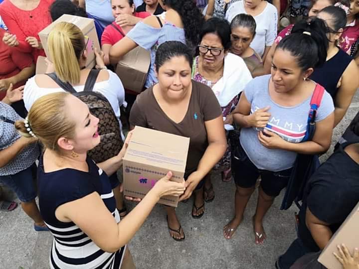 La Unión, Gro., a 27 de mayo de 2019.- Cumpliendo con lo instruido por el presidente municipal, Crescencio Reyes Torres, la presidenta honoraria del DIF, Rebeca Núñez de Reyes, hizo entrega de despensas a sectores vulnerables de seis comunidades de La Unión.