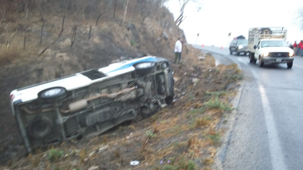 personal de dicha dependencia acudieron a brindar el auxilio tras recibir el reporte de la volcadura, originado en la carretera federal Acapulco-Zihuatanejo a la altura de la curva peligrosa de la comunidad de «Palos Blancos».