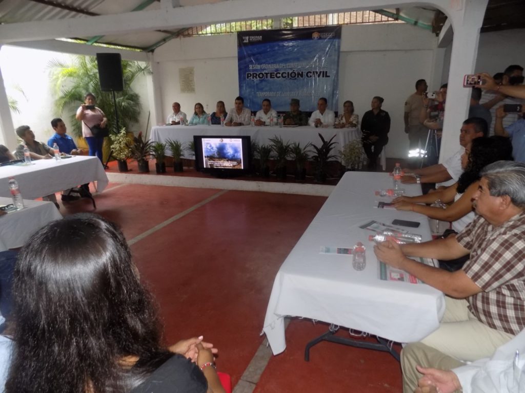 Tecpan de Galeana, Gro, 04 de junio de 2019.-El presidente municipal Yasir Deloya Díaz y el secretario de Protección Civil del estado, César Mayares Armenta, presidieron la sesión ordinaria del Consejo Municipal de Protección Civil de este municipio, este día, para informar sobre las acciones que se deben hacer y seguir, ante la actual temporada de lluvias y huracanes que recién comenzó.