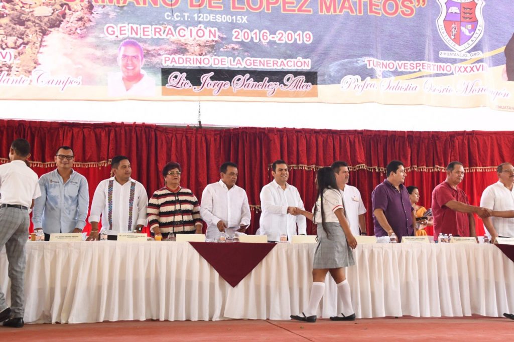 El presidente Jorge Sánchez Allec apadrinó la generación 2016-2019 de la Escuela Secundaria General Eva Sámano de López Mateos, que comprende 346 alumnos egresados de 12 grupos, 6 del turno matutino y 6 del vespertino.