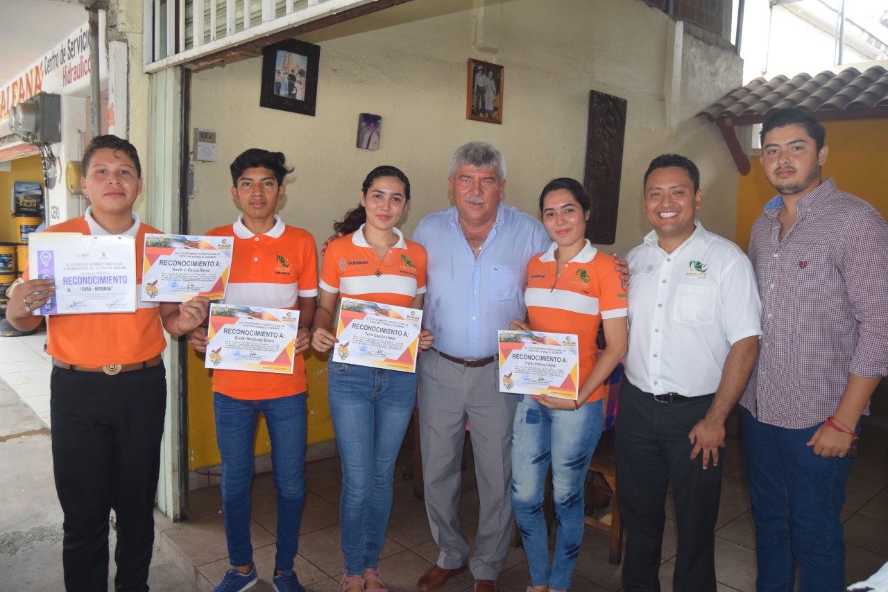 Por su parte el presidente municipal le dio instrucciones al director de turismo y Juventud, Lic. Miguel Ángel Duarte para que le diera seguimiento al proyecto de los jóvenes y los asesoré en todo lo que se requiera para que puedan consolidar su proyecto, con el registro de la marca, diseño de logotipo, empaque, etc. Por otra parte, el edil les comento que él los va apoyar en todo lo que se requiera para que puedan asistir al país de chile al concurso internacional y pongan el nombre de Petatlán en alto; para finalizar el Dr. Esteban Cárdenas les entrego unos reconocimientos por parte de su administración y felicitando al director del plantel, el Ing. Jaime Carmona Huerta y a la Dra. Susana Quevedo García, quien funge como tutora de los jóvenes y fue pieza clave en el desarrollo del proyecto y quien los acompaño en todo momento.