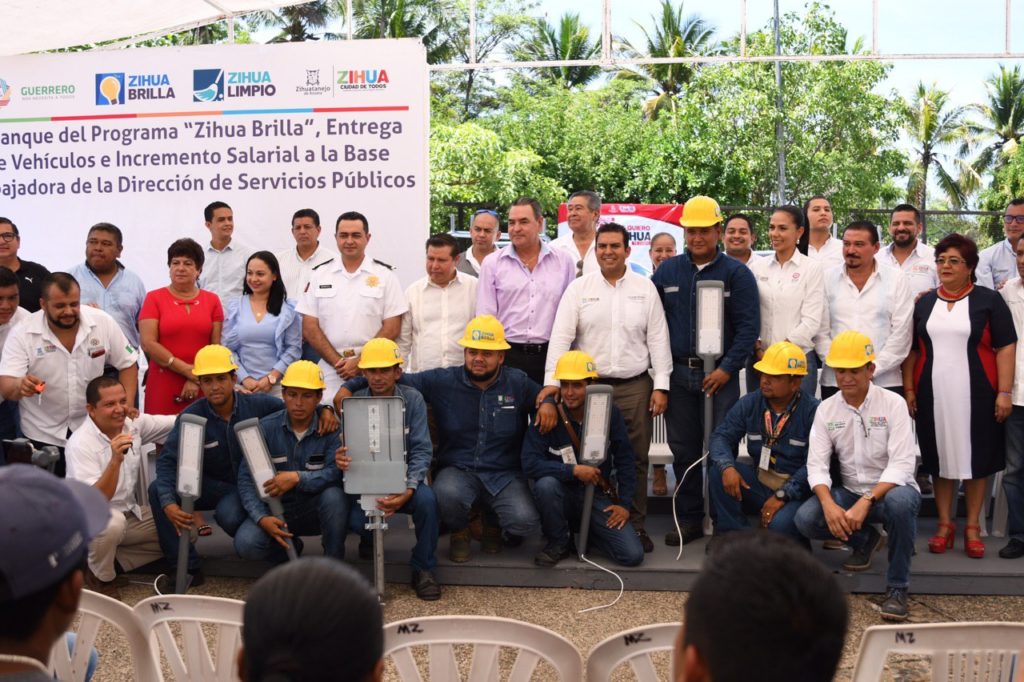 Zihuatanejo, Gro., 15 de julio de 2019.- Al poner en marcha este lunes el programa “Zihua Brilla” y hacer la primera entrega de 2500 luminarias tipo Led,