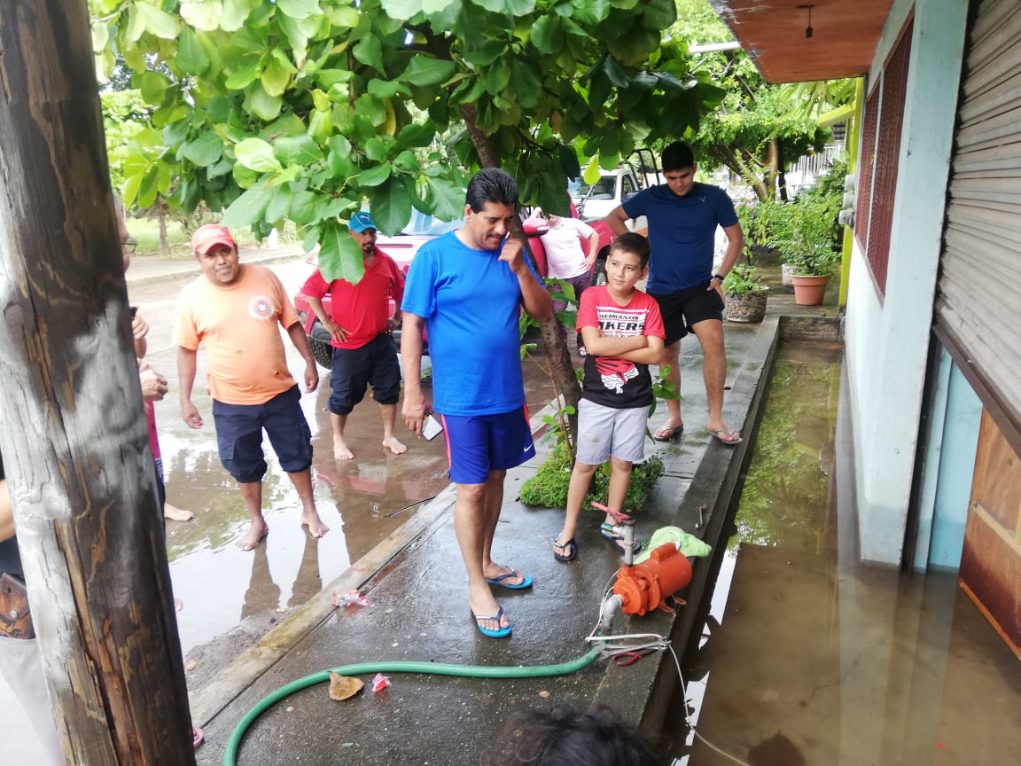 El personal de Protección Civil apoyó con una bomba para drenar el agua del interior de las viviendas inundadas. Mientras que el primer edil unionense apoyó en el trabajo para abrir canales con los cuales desalojar el agua de las calles y áreas comunes.