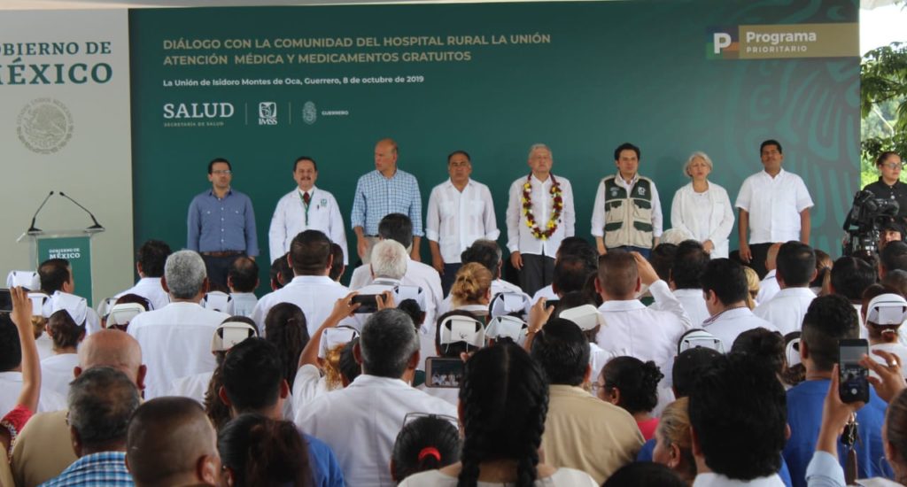 La Unión, Gro., a 08 de octubre de 2019.- El alcalde, Crescencio Reyes Torres, acompañó al presidente de la república,Andrés Manuel López Obrador y al gobernador, Héctor Astudillo Flores, en el evento Diálogo con la Comunidad del Hospital Rural La Unión Atención y Medicamentos Gratuitos, el cual se desarrolló en este municipio. El primer edil unionense junto a su esposa, Rebeca Núñez de Reyes y los integrantes del cabildo, estuvieron presentes en la visita del mandatario estatal, quien como parte de su agenda visitó el Hospital IMSS Bienestar. En su mensaje, el presidente de la república, Andrés Manuel López Obrador anunció que el municipio de La Unión se beneficiará con el programa Sembrando Vida, el cual se aplicará en el estado de Guerrero próximamente.