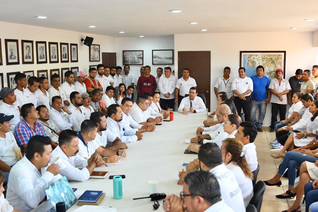 Zihuatanejo, Gro., 9 de octubre de 2019.- En una acción que no tiene precedente en la historia del gobierno de este municipio, el presidente Jorge Sánchez Allec se reunió el pasado lunes con directores y trabajadores de varias áreas de la administración pública local,
