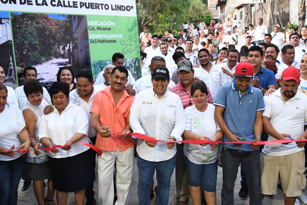Cumpliendo el compromiso que hizo en campaña con habitantes de la colonia Miramar, el presidente Jorge Sánchez Allec, encabezó este lunes la inauguración de la pavimentación de la calle Puerto Lindo.