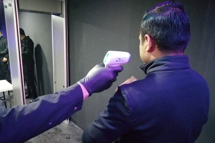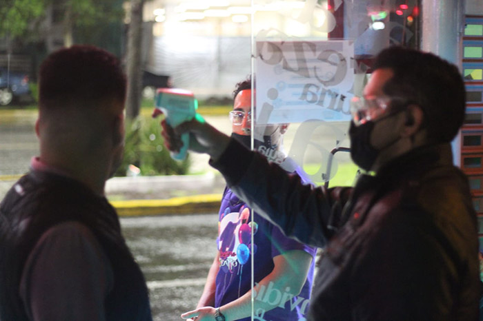 El staff de seguridad de cada establecimiento se ha convertido en el primer filtro. Utilizan termómetro para medirles la temperatura a los asistentes, los «bañan» de sanitizantes y les colocan gel antibacterial.
