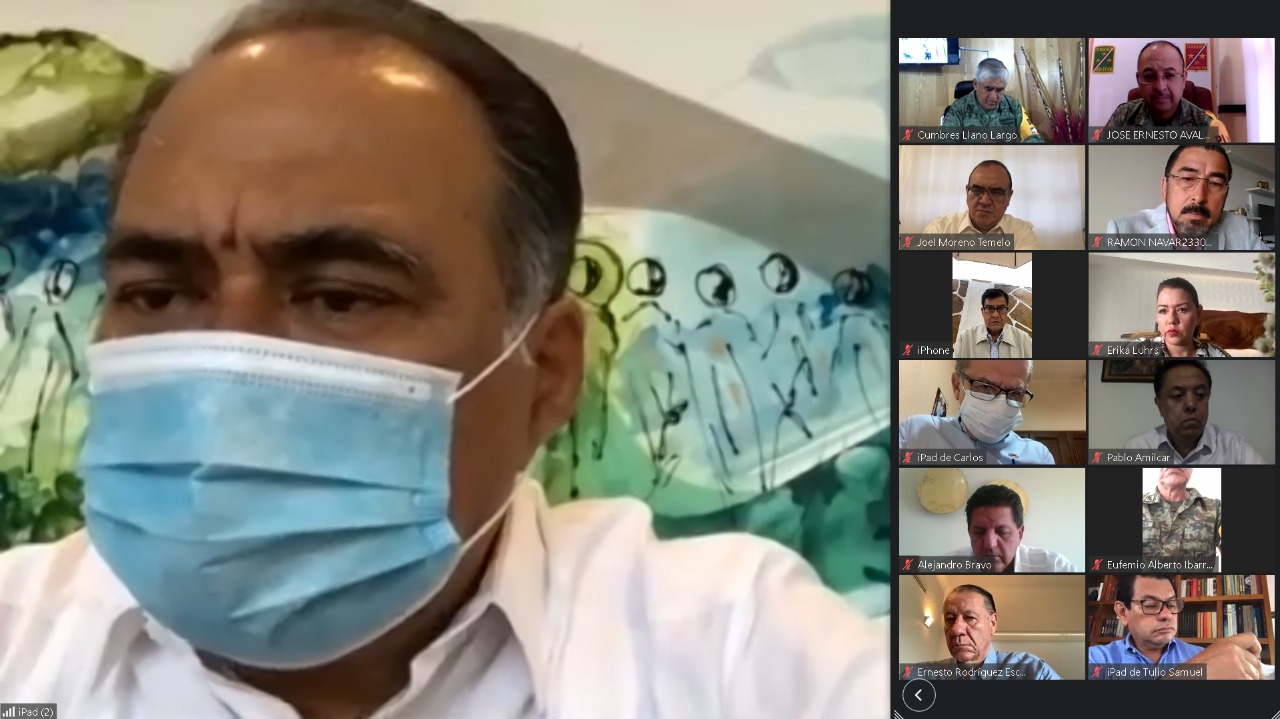 Estuvieron presentes en la reunión virtual, el delegado en Guerrero, Pablo Amílcar Sandoval Ballesteros, el comandante de la Novena Región Militar, Miguel Hurtado Ochoa, el comandante de la Octava Región Naval, Francisco Limas López y el comandante de la 27 Zona Militar, Eufemio Ibarra Flores.