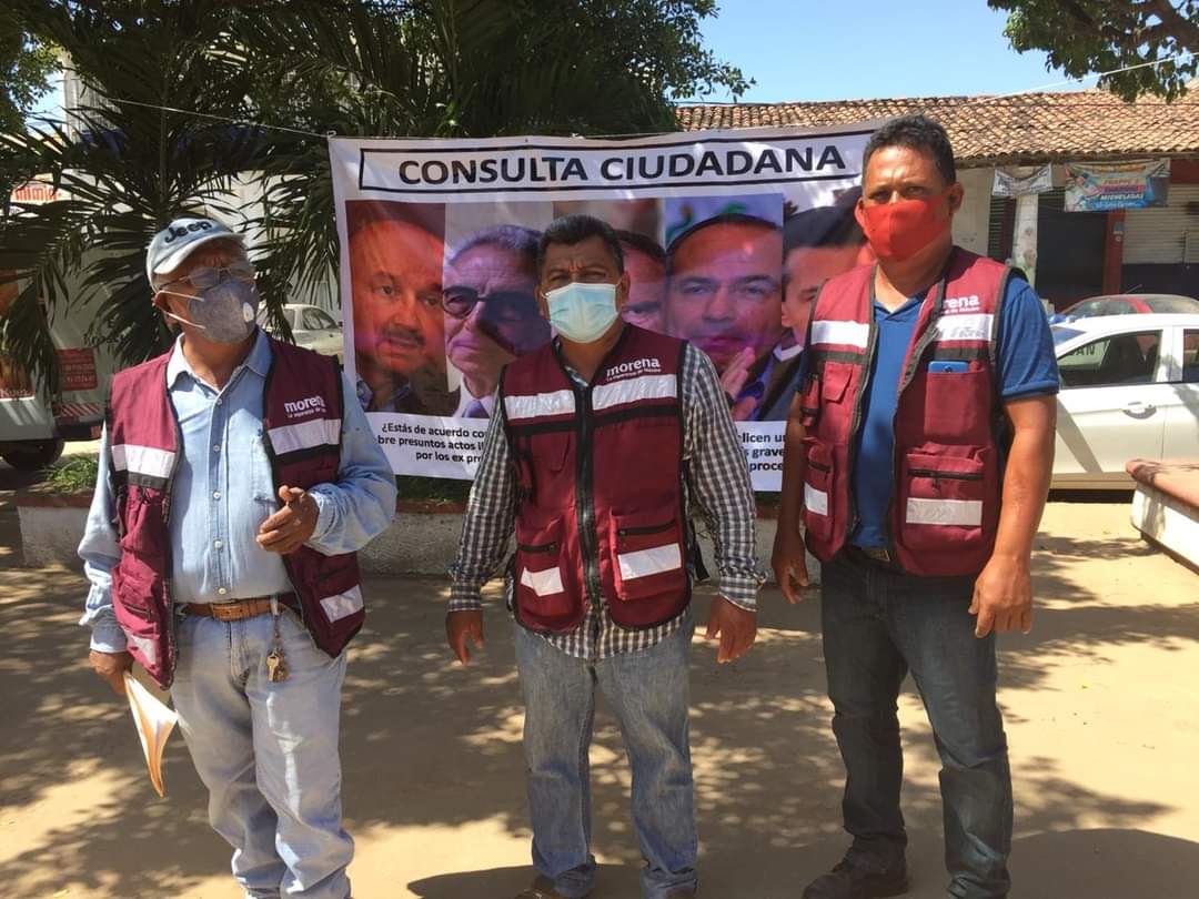 Petatlán, Gro; 02 de septiembre de 2020.- Dirigentes estatales, nacionales y municipales del partido político Morena, desde este día comenzaron con su consulta ciudadana para que se puedan hacer cambios a la ley desde la cámara de diputados federales y puedan ser enjuiciados los expresidentes de la República priístas, Ernesto Zedillo Ponce de León, Carlos Salinas de Gortari y Erique Peña Nieto, así como los panistas Vicente Fox Quesada y Felipe Calderón Hinojosa.