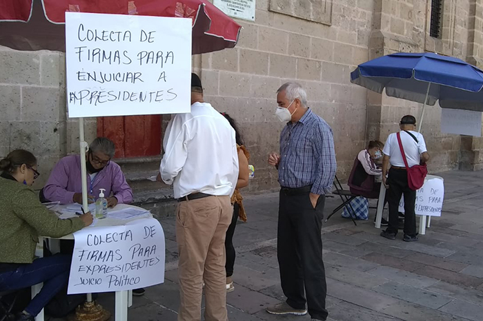 Morelia, Michoacán. Decenas de morelianos comenzaron a recabar firmas para solicitar a las autoridades la convocatoria de una consulta ciudadana a fin de decidir si se debe investigar y enjuiciar por corrupción y otros delitos a los expresidentes de México