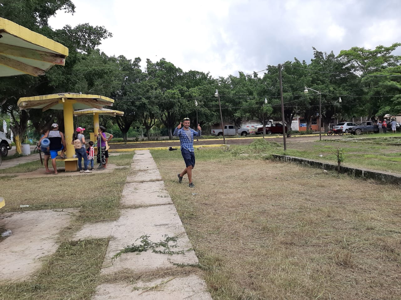 Papanoa, Gro; 07 de septiembre de 2020.-Con el objetivo de cambiar la mala imagen que presentaba la localidad de Papanoa, pobladores y la comisaria municipal Claudia Hernández Urióstegui, le dieron una limpiada al parque principal de la población, además de remozarlo para la sana convivencia de las familias locales.