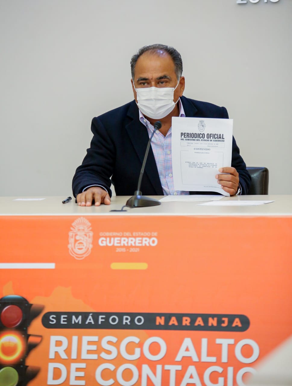 Chilpancingo, Gro. – El gobernador Héctor Astudillo Flores dio a conocer que ya se publicó en el Periódico Oficial del Estado la normatividad con la que Guerrero se va ajustar con responsabilidad al semáforo naranja por lo que está semana se continuarán con los mismos porcentajes y será la próxima semana cuando serán restringidas las actividades, pero con rigurosidad sin poner en riesgo la salud de la población y la actividad turística.