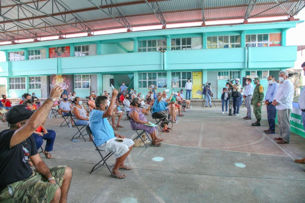 Petatlán, Gro.- «Todo el apoyo para el pueblo de Petatlán. No están solos, por eso estoy aquí», señaló el gobernador Héctor Astudillo Flores durante la entrega de apoyos económicos a las más de 850 familias que sufrieron daños en su patrimonio a consecuencia del paso de la Tormenta Tropical Hernán por la Costa Grande.