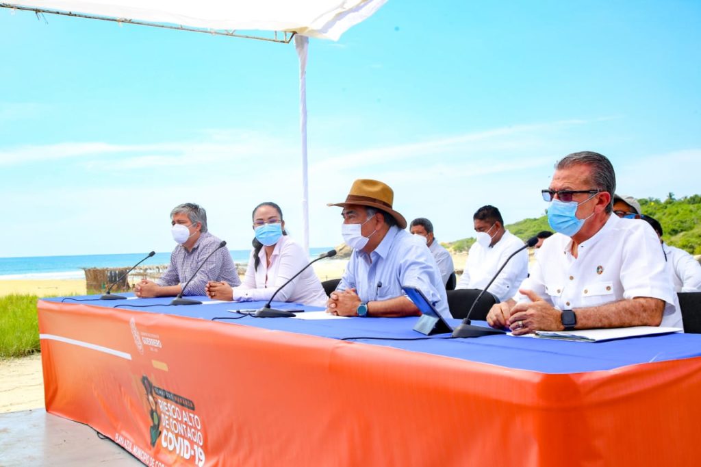 Desde la zona turística de playa del Municipio de Copala, donde realizan obras para impulsar este punto como el cuarto polo turístico de la entidad, el Gobernador Héctor Astudillo Flores, reiteró su recomendación de cuidado higiénico, usar el cubrebocas y la sana distancia en lugares de mayor afluencia para evitar contagiarse de Covid19.